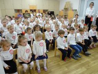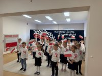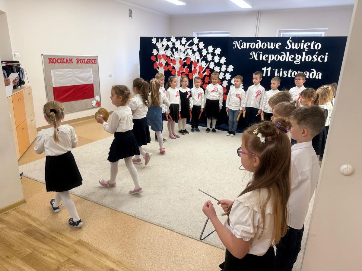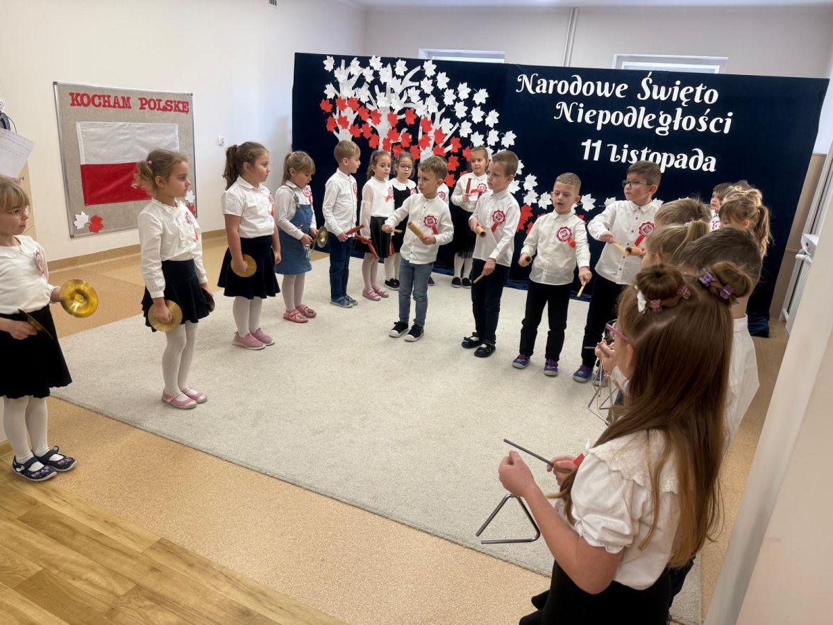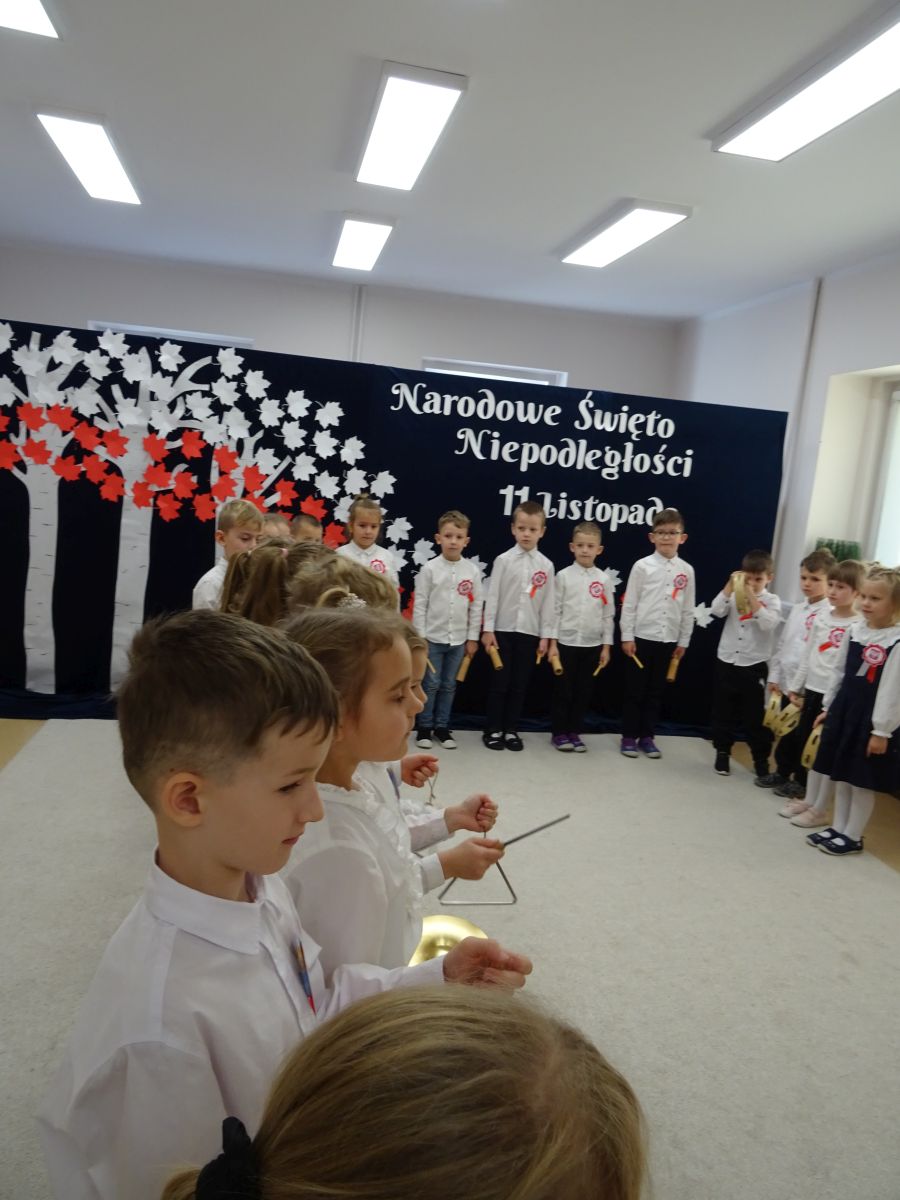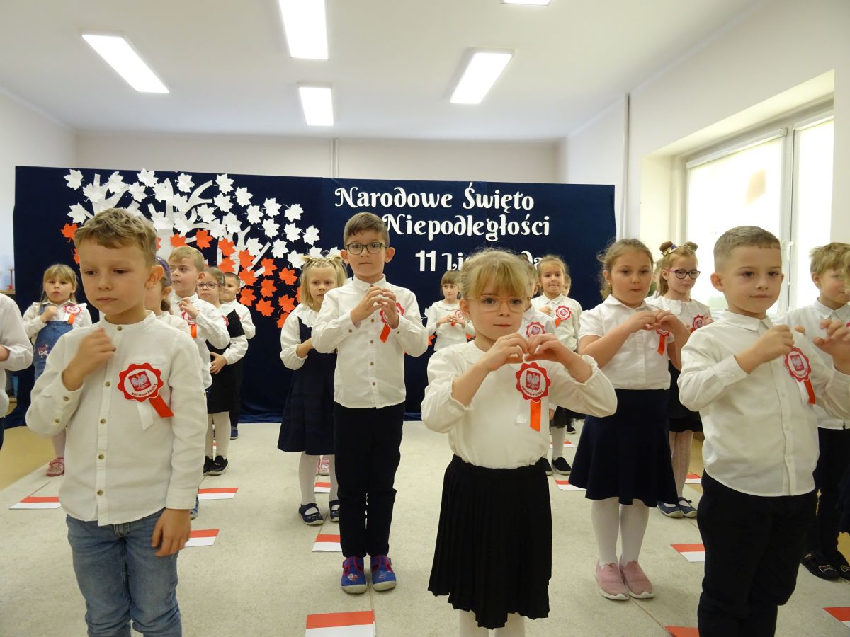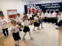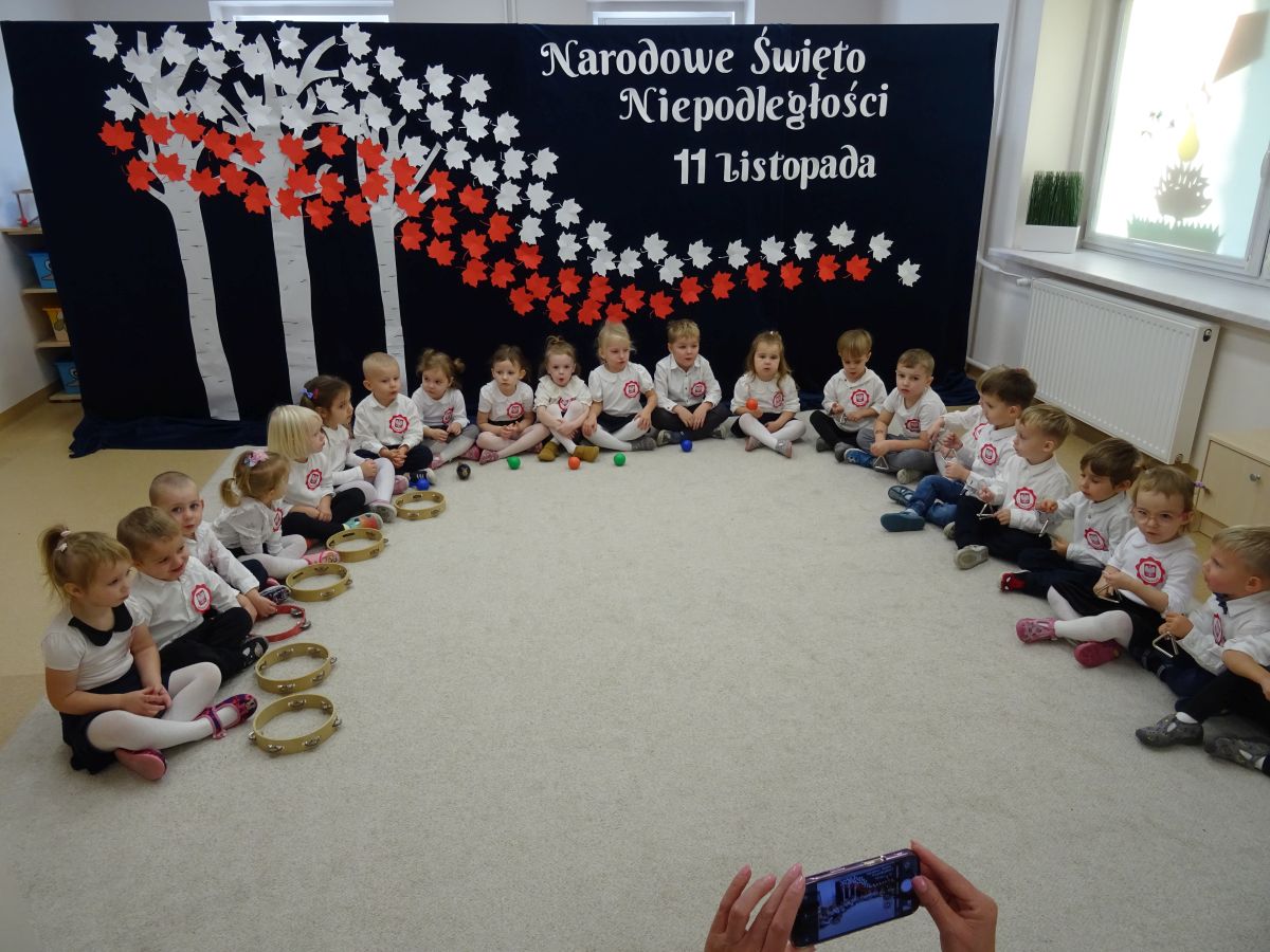 7 listopada w naszym przedszkolu odbyła się uroczysta akademia z okazji "Święta Odzyskania Niepodległości". Przedszkolacy w pełnej gali zaprezentowali piosenki, tańce oraz wiersze nawiązujące tematyką do naszej Ojczyzny - barw narodowych, godła, flagi oraz ważnych wydarzeń związanych z Polską. Na zakończenie wszyscy bardzo uroczyście odśpiewali "Mazurek Dąbrowskiego" - hymn Polski.. Cała uroczystość miała bardzo podniosły charakter. Na twarzach dzieci widać było skupienie i zrozumienie ważności tego święta.