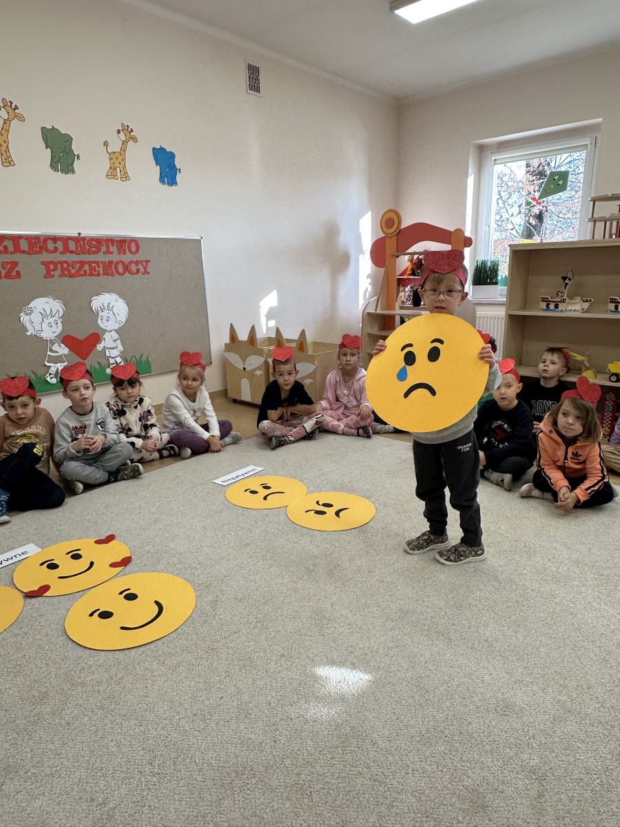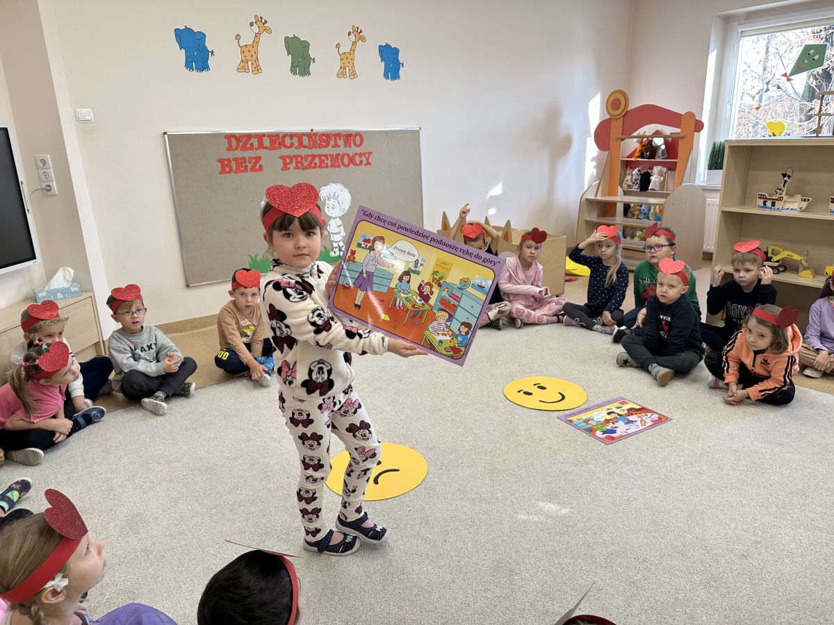 W grupach Motylki i Biedronki odbyły się wyjątkowe zajęcia pod hasłem "Dzieciństwo bez przemocy". Spotkanie miało na celu uwrażliwienie najmłodszych na znaczenie szacunku, życzliwości, bezpieczeństwa w codziennych relacjach z rówieśnikami oraz dorosłymi. Przedszkolaki dowiedziały się, że każdy człowiek ma prawo do miłości, bezpieczeństwa i szacunku, a słowa mogą ranić tak samo jak czyny.