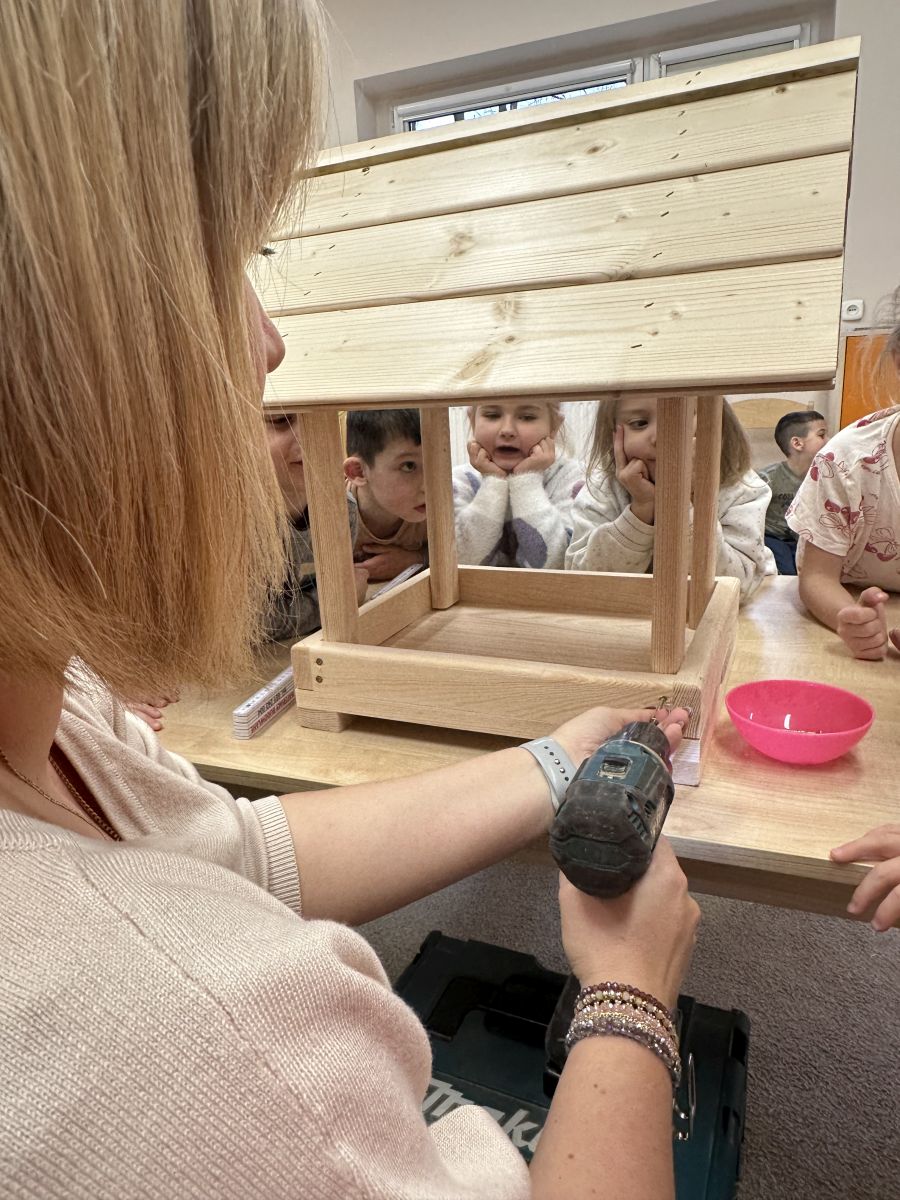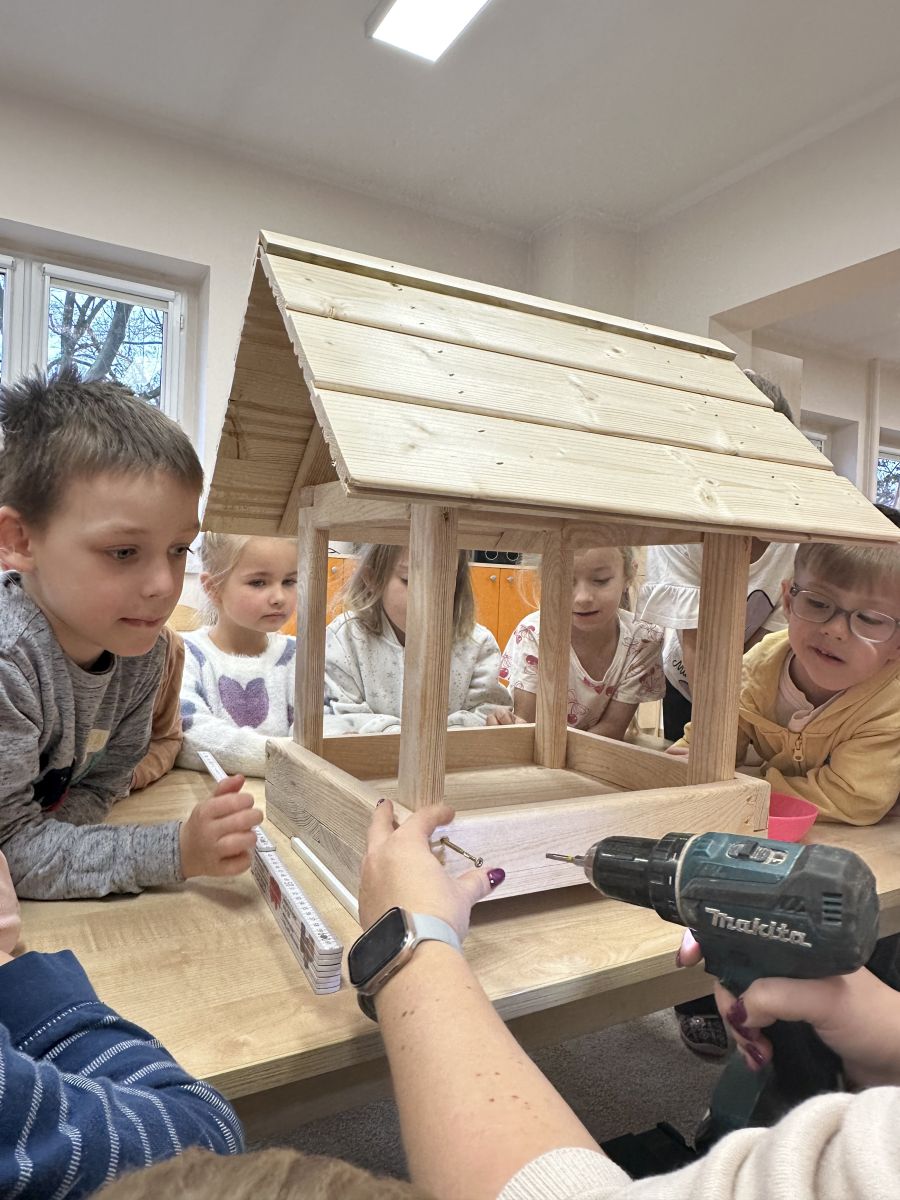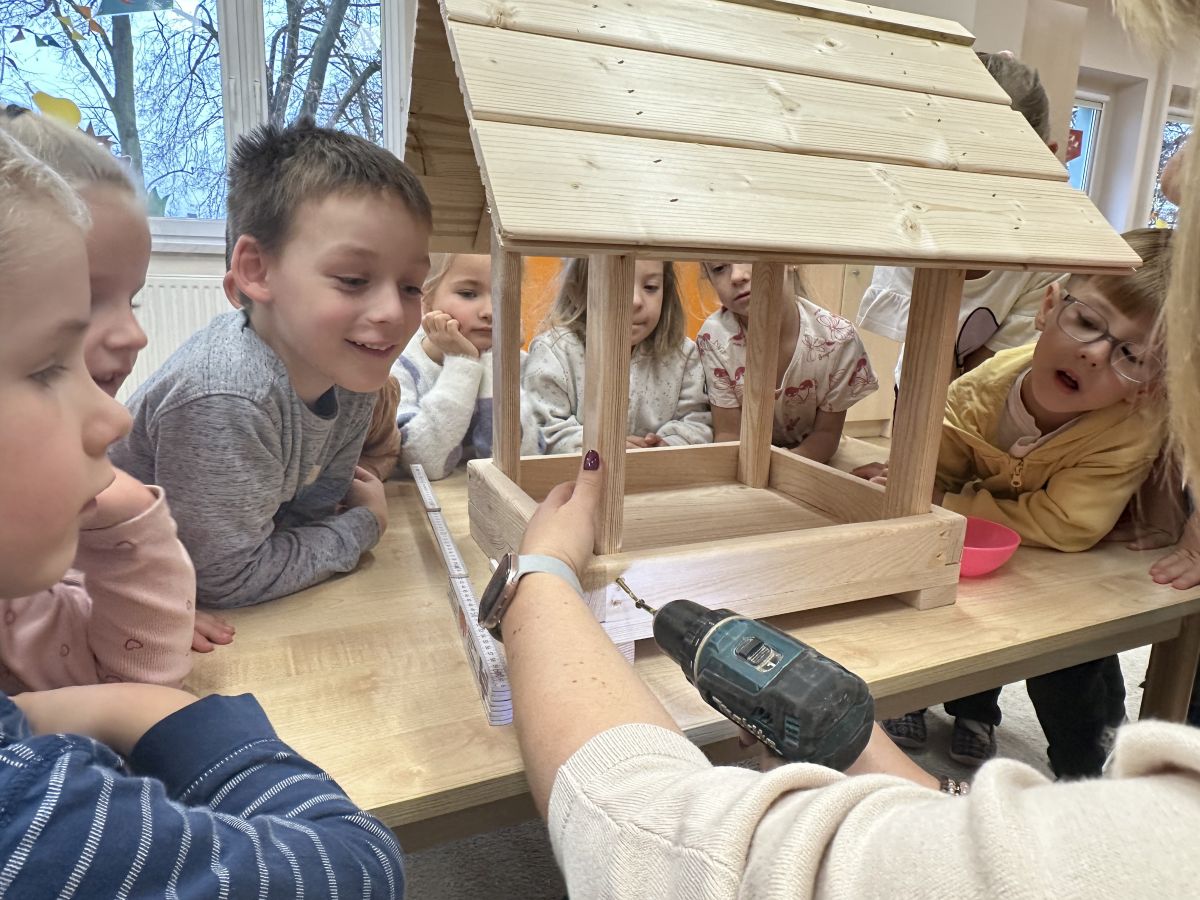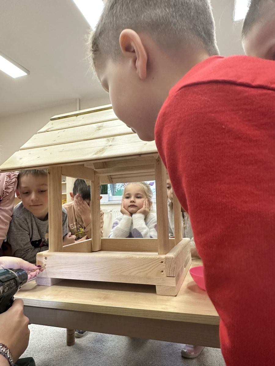 W naszej grupie odbyły się wyjątkowe zajęcia, podczas których dzieci wspólnie z wychowawczynią budowały swój własny, grupowy karmnik dla ptaków, który już niebawem swoje miejsce znajdzie w naszym ogrodzie przedszkolnym. Była to wspaniała okazja nie tylko do rozwijania umiejętności manualnych, ale także zasad dbania o przyrodę i zwierzęta zimą. A w ogrodzie „Motylki” z jesiennych liści stworzyły ogromny domek dla jeży.