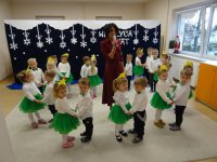 Tradycją naszego przedszkola jest goszczenie zacnych emerytowanych pracowników naszej placówki..Aby umilić gościom pobyt , dzieci z wszystkich grup zaprezentowały program artystyczny, który wprowadził nas w radosny i świąteczny nastrój. Były wspomnienia, rozmowy, życzenia i wiele, wiele uśmiechu i radości. Dziękujemy gościom za wizytę.