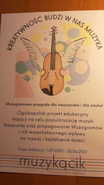 "Pszczółki" biorą udział w ogólnopolskim projekcie edukacyjnym "Kreatywność budzi w nas muzyka...- Muzogramowa przygoda dla nauczyciela i smyka ! "Celem projektu jest obcowanie i popularyzacja muzyki klasycznej oraz rozwijanie wrażliwości muzycznej. Co miesiąc dzieci analizują inny utwór muzyki klasycznej, sięgając po inne środki i akcesoria, które pomagają nam w stworzeniu całego szeregu ciekawych zabaw i ćwiczeń w oparciu wyłącznie o jeden temat muzyczny. Pomocne w opracowaniu utworu przychodzą nam również MUZOGRAMY -usystematyzowane i uporządkowane szeregi znaków graficznych opracowane i kreślone zgodnie z przebiegiem konkretnego utworu muzycznego. Może nie wszyscy lubią muzykę klasyczną, ale jest to wspaniały materiał na zabawy, przy którym dzieci świetnie bawią się i uczą i który umila czas pobytu w przedszkolu.