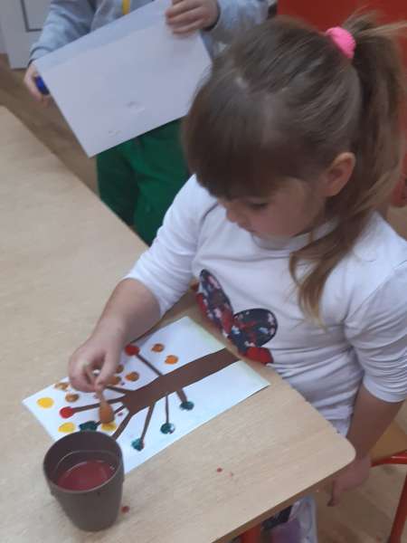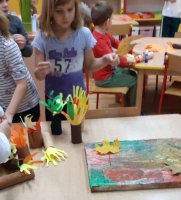 "Pszczółki" wykonywały październikowe zadania, wynikające z realizacji projektu edukacyjnego "Kreatywny przedszkolak - kreatywne dziecko" oraz "Z kulturą mi do twarzy", polegające na skomponowaniu jesiennej makiety z dostępnych darów przyrody oraz na wykonaniu pracy w jesiennej palecie barw. Nasza praca była wieloetapowa. Dzieci inspirowały się obserwacjami przyrody, podziwiały jesień w sztuce. Miały okazję do działań twórczych wykonując wiele ciekawych , jesiennych prac plastycznych. Pracując w grupach i indywidualnie wykonały poszczególne elementy makiety, komponując je w piękną całość. Doświadczenia z mieszaniem kolorów oraz operowaniu plamą przyczyniły się do powstania pięknych jesiennych drzew. Efekty działań dzieci można podziwiać w galerii.