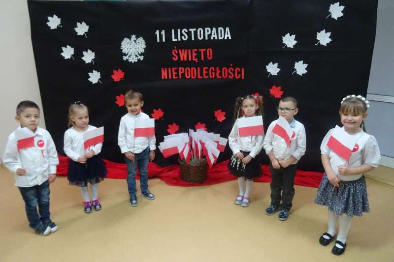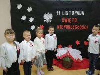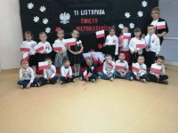 Przedszkolacy w ostatnim czasie podejmowali bardzo ważne tematy, dotyczące odzyskania Niepodległości przez nasz kraj. Uczyli się szacunku do Ojczyzny. Próbowali zrozumieć, jak cenną sprawą jest fakt, że żyjemy w wolnym kraju. Poznali symbolikę flagi i godła. Uczyli się "Mazurka Dąbrowskiego". 10 listopada - w przeddzień święta - "Mazurek Dąbrowskiego" uroczyście wybrzmiał w murach naszego przedszkola.Każda grupa odśpiewała hymn w podniosłym nastroju - przy dekoracji w narodowych barwach, w odświętnych ubiorach przyozdobionych kotylionami biało-czerwonymi i z powagą na ustach. Jesteśmy dumni z takiej postawy naszych wychowanków