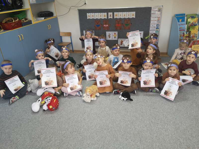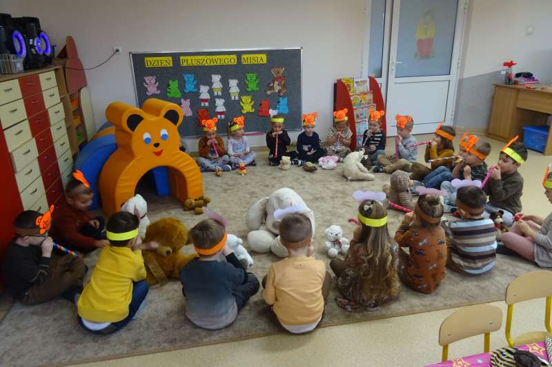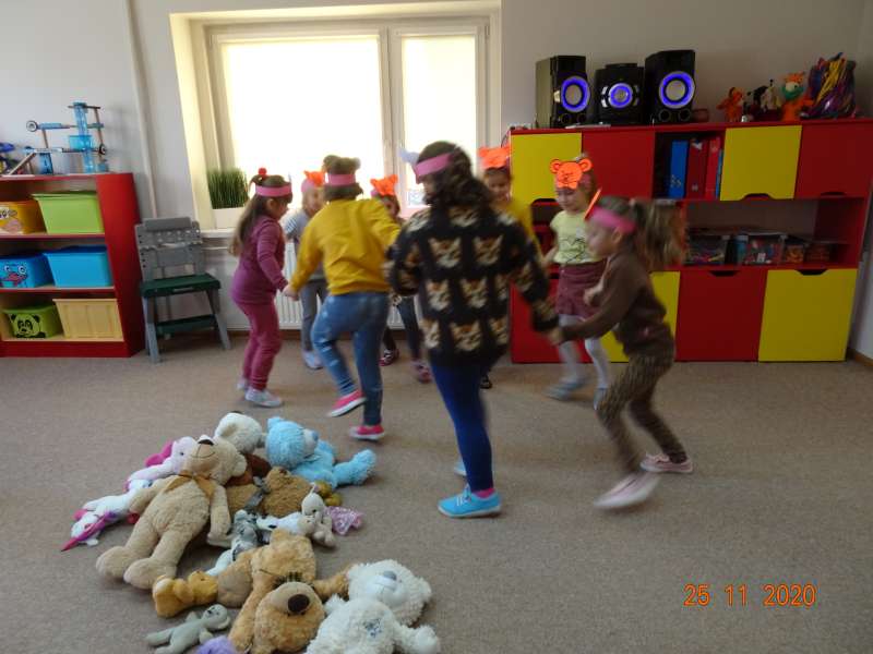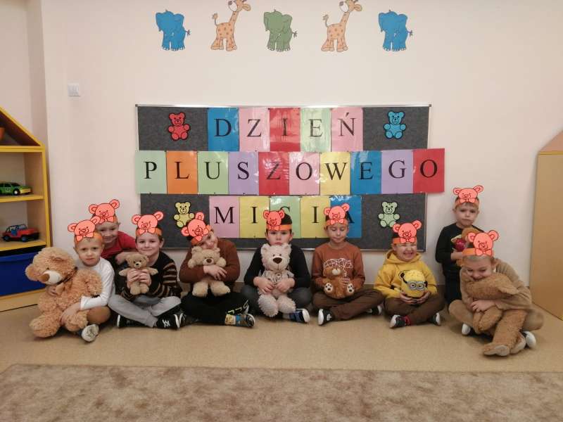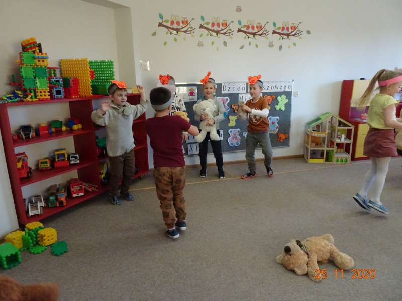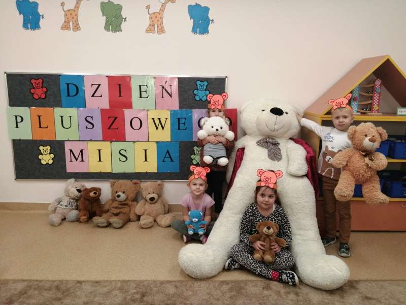 W dniu 25.11.2020 przedszkolaki uczestniczyły w obchodach Dnia Pluszowego Misia. Mimo coraz nowocześniejszych i atrakcyjnych zabawek moda na misie nie przemija. Tego dnia każde dziecko przyszło do przedszkola ze swoim "przyjacielem".Przybyły misie małe i duże, białe, brązowe i kolorowe. Każdy z nich był wyjątkowy i najpiękniejszy. Dzieci zostały zaproszone do wspólnej zabawy . Dla dzieci w przedszkolu przygotowano wiele atrakcji, zabawy ruchowe,muzyczne, plastyczne, quizy, zgadywanki, misiowe tańce, degustacja miodu, czekolady i misiowych babeczek. Ten dzień w przedszkolu był pełen uśmiechu oraz wspólnej zabawy z pluszakiem. Myślę, że na długo zostanie on w pamięci naszych przedszkolaków.