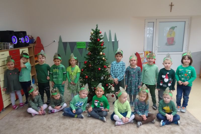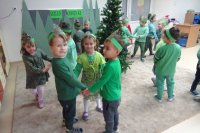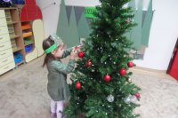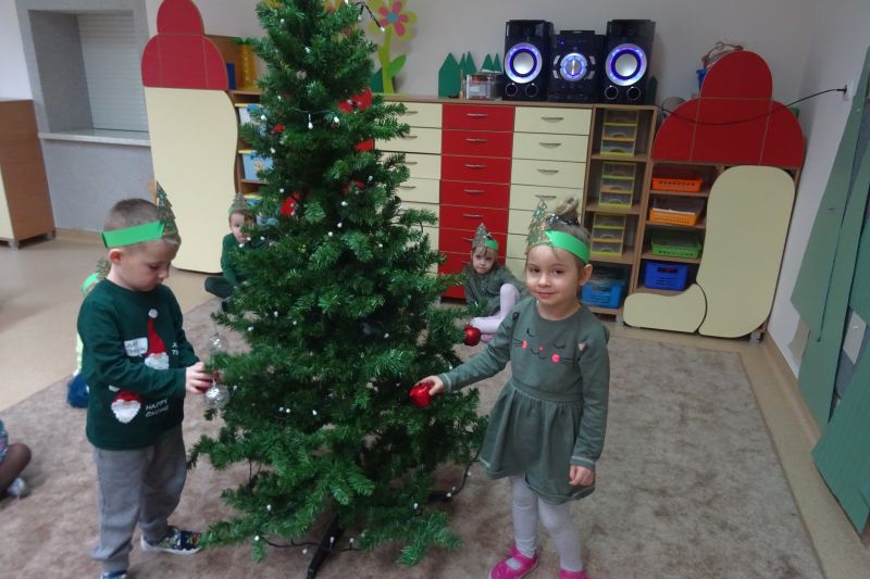 11 grudnia w naszej grupie obchodziliśmyDzień choinki. Tego dnia przedszkolacy ubrani na zielono z wielkim zapałem zabrali się do ubierania choinki. Wysłuchały bajkę Andersena pt. "Choinka'' oraz tworzyły kreatywnie różne choinki, które wyglądały prześlicznie. Zajęcia te sprawiły dzieciom dużo radości, a w naszej sali zrobiło się bajkowo i świątecznie.
