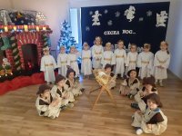 Każdego roku o tej porze w przedszkolu dzieci wprowadzają rodziców w nastrój świąteczny zapraszając na jasełka i wspólne kolędowanie. W tym roku nie mogliśmy zaprosić gości co nie znaczy, że świąteczna atmosfera nam nie towarzyszy. Chcąc swoim rodzicom zrobić niespodziankę dzieci z każdej grupy przygotowały piękny świąteczny program artystyczny i jak prawdziwi aktorzy zostali nagrani na filmiki. Prezentację rodzice otrzymali na własnych portalach - mamy nadzieję, że ten świąteczny prezent wzruszył każdego rodzica i wycisnął łzę radości w oku. My prezentujemy galerię zdjęć i krótki filmik - wybrane fragmenty każdej grupy - życząc niezwykłego oglądania