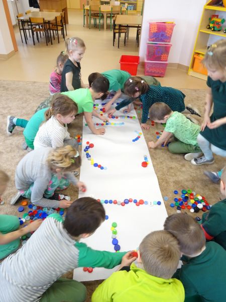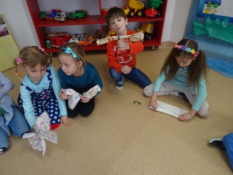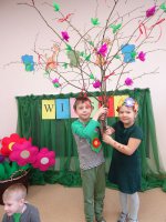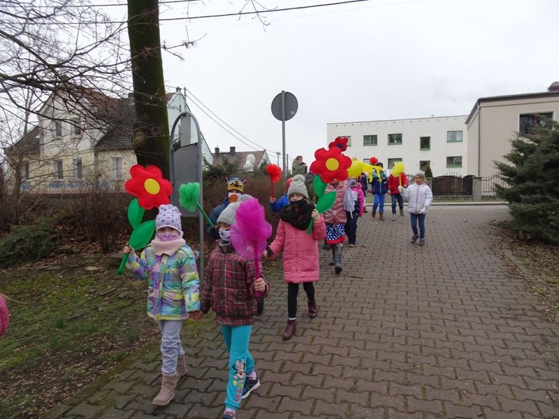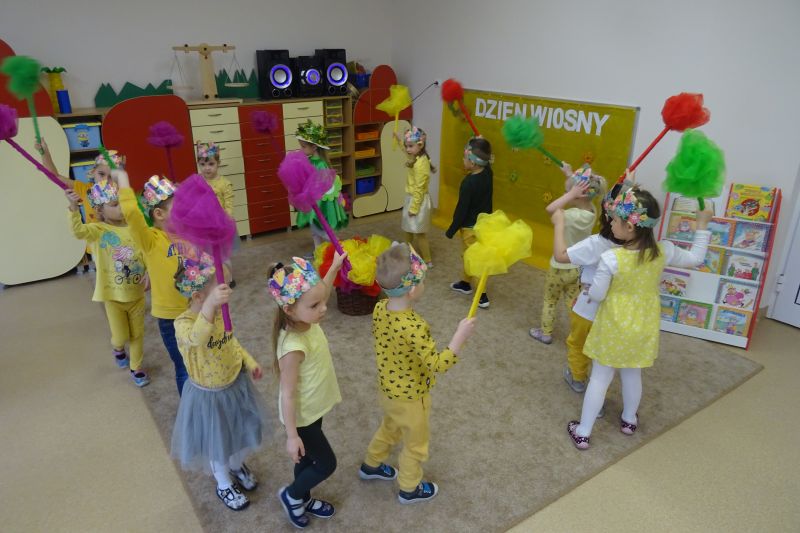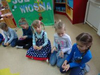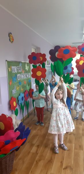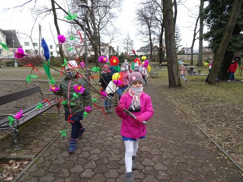Powitanie wiosny to dla każdego z nas wyczekiwane wydarzenie. Ogromne emocje wzbudziły wśród dzieci juz same przygotowania - przystrajanie gaika itp. W dniu wiosny wszyscy pojawili się w przedszkolu ubrani w wiosenne kolory. Były tańce, śpiewy, wiosenne quizy i mnóstwo zabawy. Najbardziej oczekiwaną przez dzieci atrakcją był spacer po najbliższej okolicy, który w naszym wykonaniu był barwny i wysoły. Mamy nadzieję, że starania naszych wychowanków sprawią, że wiosna zagości u nas na dobre...