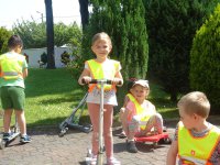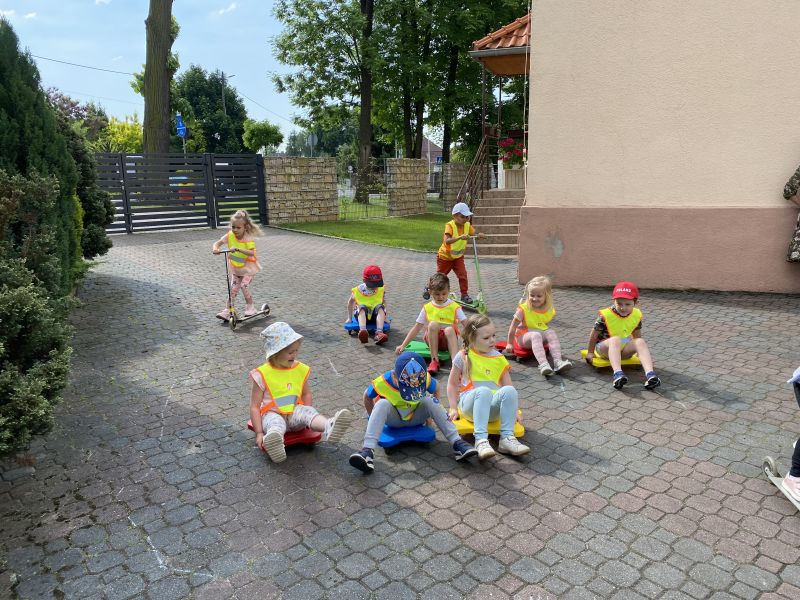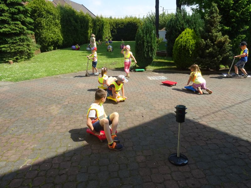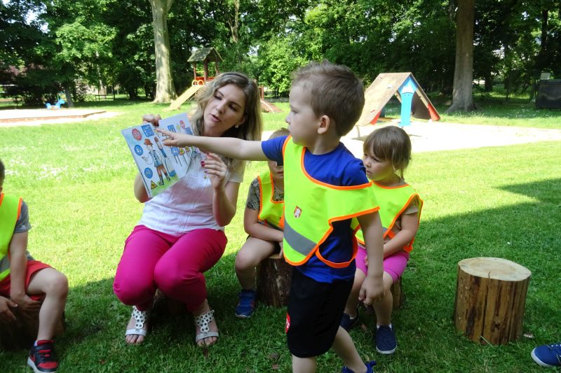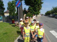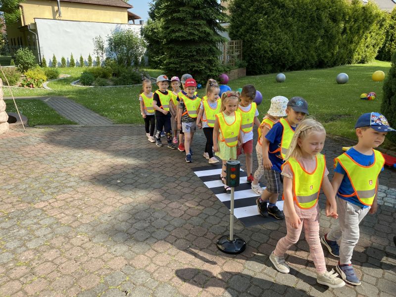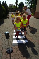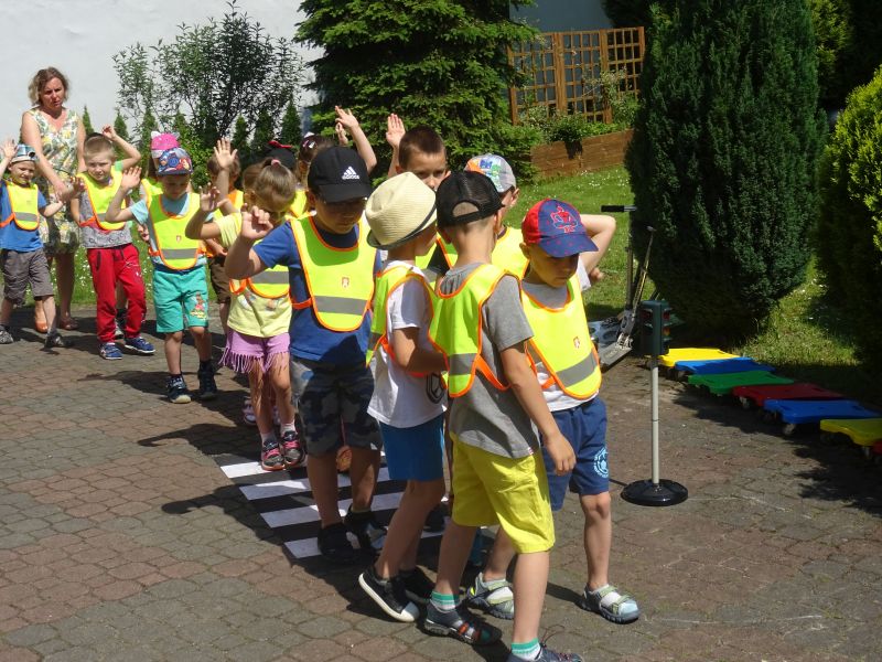 Kilka dni później, aby zapoznać dzieci z książeczką, przypomnieć zasady bezpieczeństwa i uwrażliwić na konieczność ich stosowania zorganizowaliśmy w przedszkolu "Dzień bezpieczeństwa":. Dzieci przechodząc przez kolejne stacje zadań pogłębiały znajomość ważnych spraw dotyczących poprawnego zachowania się na ulicy. Była to świetna zabawa, a przede wszystkim NAUKA POPRZEZ ZABAWĘ. Wszystkim życzymy bezpieczeństwa na ulicy.