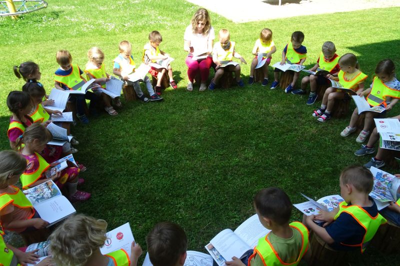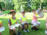 Cieszymy się , że dzięki staraniom nauczycielek naszego przedszkola, które opracowały tekst, ilustracje i przy współpracy z Urzędem Gminy została wydana nasza kolejna autorska książeczka. Książka nosi tytuł "Karolinka i Karlik mądre głowy mają, jak zachować się na ulicy "dobre rady dają". Sam tytuł wskazuje na to, że książka traktuje o sprawach bardzo ważnych - o bezpiecznym zachowaniu na ulicy. Uroczysta premiera i wręczenie książeczek dzieciom przez pana Burmistrza odbyło się podczas wycieczki w "Dniu Dziecka".