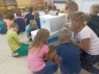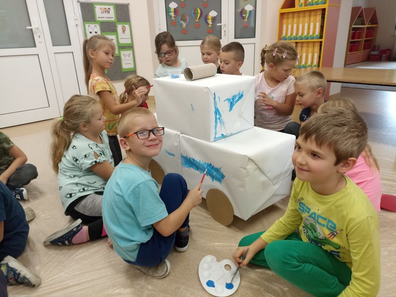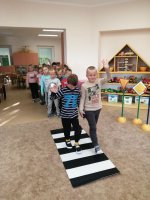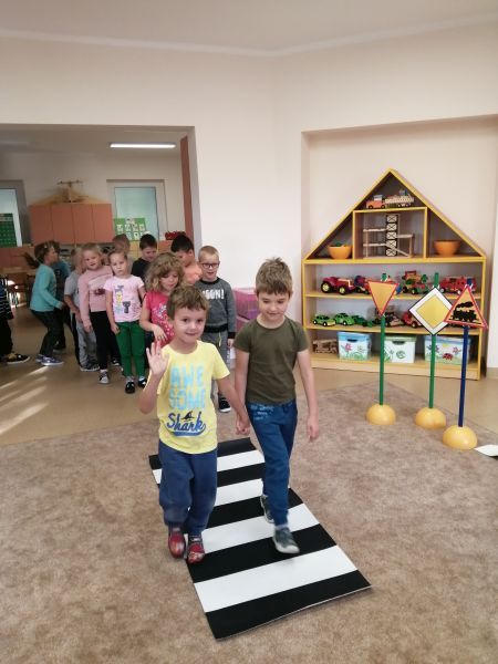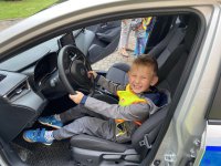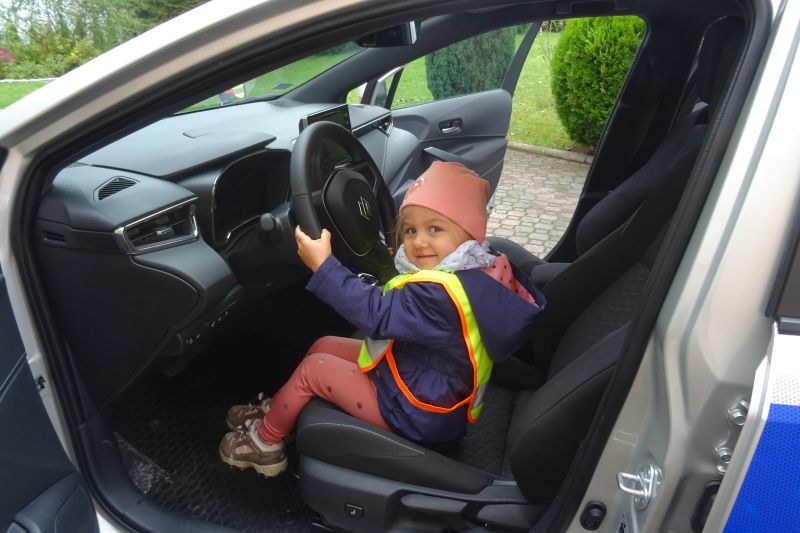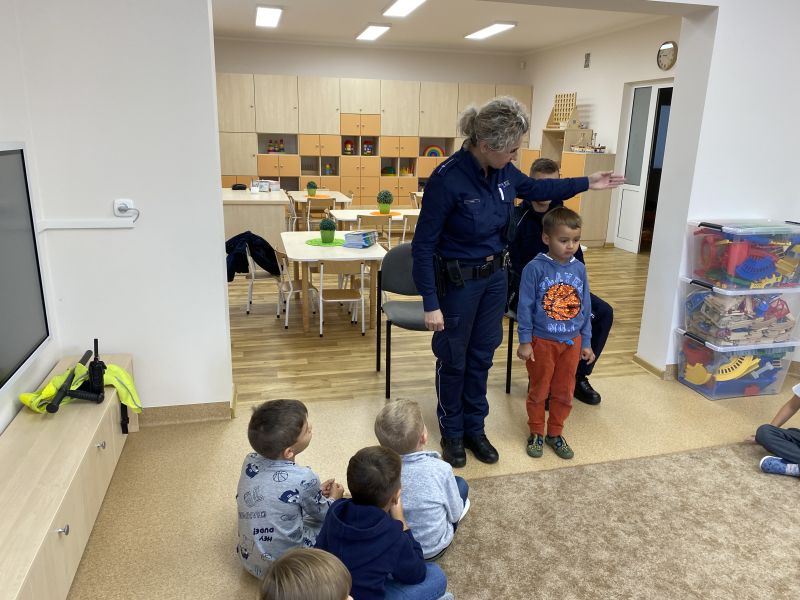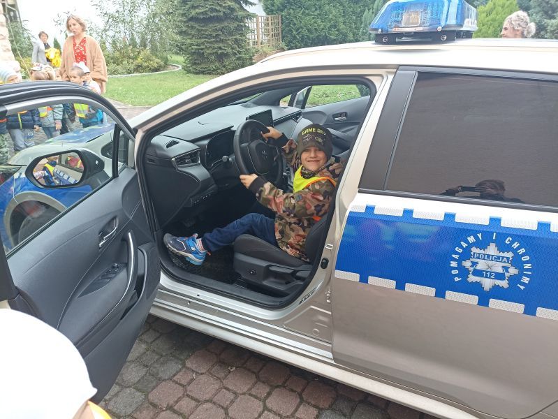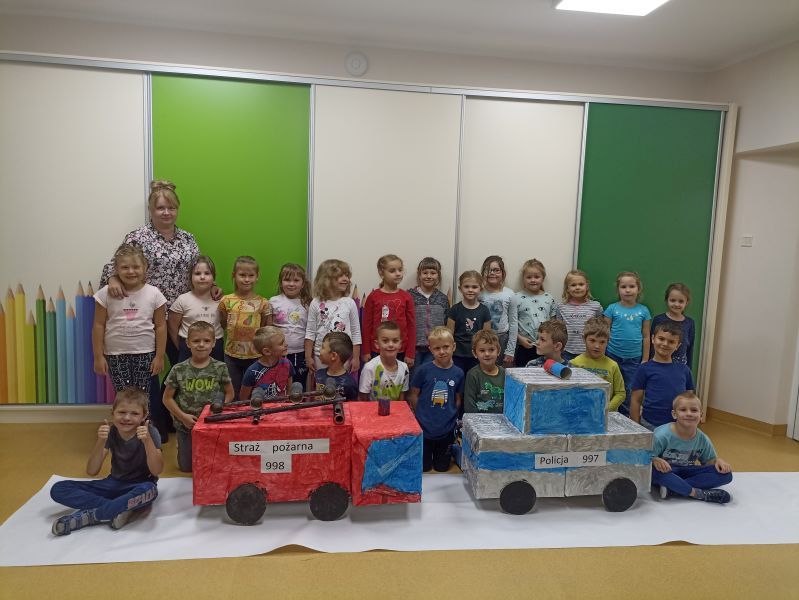 Dnia 23.09.2021 nasze przedszkole odwiedzili policjanci z Komisariatu Policji w Gogolinie , którzy przeprowadzili pogadankę na temat bezpieczeństwa, . Celem tego spotkania było kształtowanie prawidłowych zachowań oraz postaw wśród przedszkolaków. Dzieci zapoznały się z zasadami bezpiecznego poruszania się podczas przechodzenia przez jezdnię oraz zapamiętały ważne numery alarmowe. Policjanci uświadomili dzieci o konieczności jeżdżenia w fotelikach z zapiętymi pasami, a także o nie nawiązywaniu znajomości z obcą osobą. Przedszkolaki miały okazję dowiedzieć się również na czym polega praca policjanta, jak wygląda jego mundur oraz jaki sprzęt jest potrzebny policjantom podczas służby. Największą jednak atrakcją był samochód policyjny, który zaparkował na terenie naszego przedszkola. Każdy przedszkolak miał okazję wsiąść i obejrzeć radiowóz. Najwięcej radości wzbudziło włączenie sygnałów alarmowych. Na zakończenie spotkania przedszkolaki podziękowały policjantom za wizytę wręczając upominek. Tego typu spotkania mają niewątpliwie wpływ na podnoszenie poziomu świadomości dzieci na temat podstawowych zasad bezpieczeństwa.
