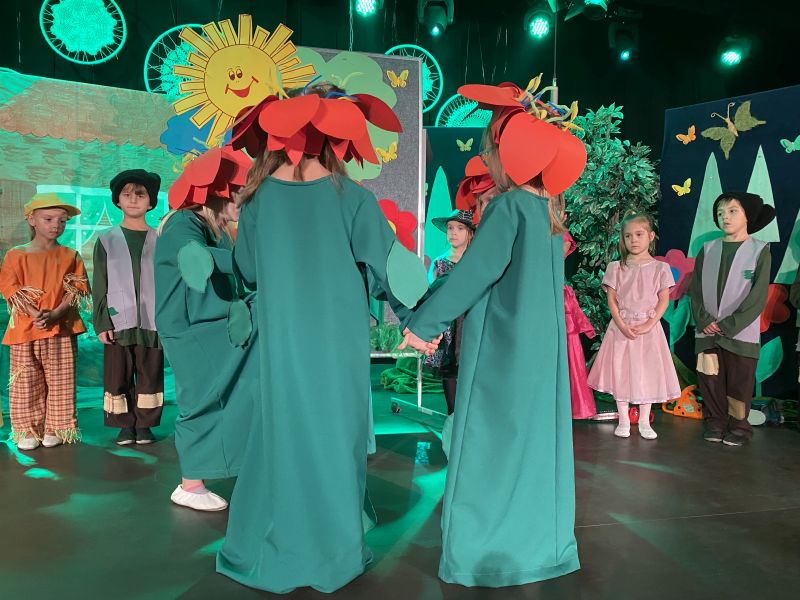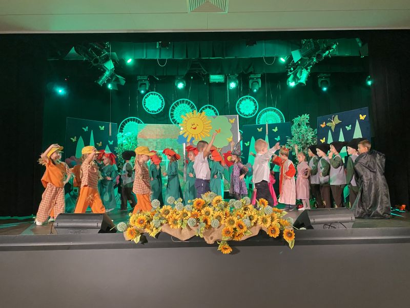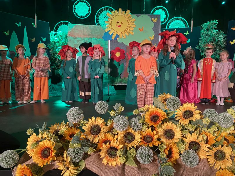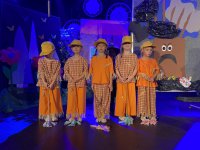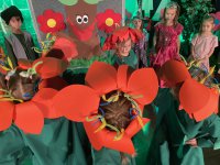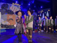 W sobotni poranek nasi przedszkolacy po długiej przerwie rozpoczęli w Gminnym Centrum Kultury cykl spotkań pt. "Witajcie w naszej bajce".Grupa dzieci 6-letnich - 'Krasnoludki" , wystawiła inscenizację pt. "Królewna Śmieszka i Ekoludki". Przedstawienie tematycznie związane z ekologią ma piękne i ważne przesłanie, aby dbać o planetę Ziemię i szanować przyrodę. Nasi aktorzy stanęli na wysokości zadaniai pięknie odegrali swoje role. Piękne stroje, dekoracje, oświetlenie i efekty specjalne sprawiły, że klimat wytworzył się prawdziwie teatralny. Widownia słuchała i patrzyła z zapartym tchem. Wszystkim spektakl bardzo się podobał o czym świadczyły gromkie brawa oraz wiele, wiele pochwał. Oprócz przedstawienia na dzieci tego poranka czekały niespodzianki. Przed rozpoczęciem występu czas umilała "Wędrująca Kapela", która zachęcała dzieci do włączenia się we wspólne muzykowanie. Po występie wszystkie dzieci obdarowane zostały słodkim cukierkiem oraz kolorowanką. Aktorom gratulujemy sukcesu na scenie. Widzom dziękujemy za przybycie i wytworzenie na widowni pięknego nastroju.