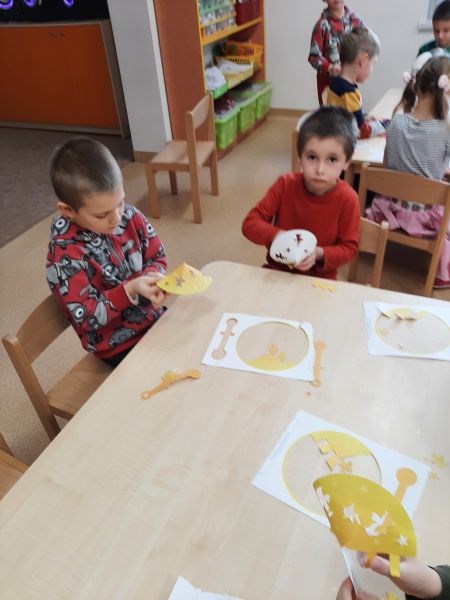 Do grupy „Sówek” zawitała choineczka. Dzieci zaraz zabrały się za przygotowywanie ozdób choinkowych, łańcuchów, którymi przyozdobiły choinkę. A później wszyscy wesoło bawili się i tańczyli wkoło choinki.