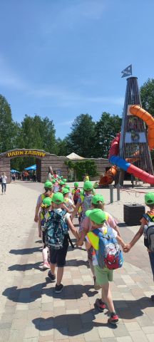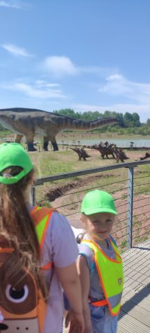 Dzień rozpoczęliśmy miłą wizytą pani naczelnik, która wręczyła Nam słodkie upominki. Dzieci wyruszyły autokarem na wycieczkę pełne ekscytacji . Tunel prehistoryczny, kino 5d, oceanarium i eksponaty dinozaurów zrobiły na przedszkolakach ogromne wrażenie. Nie brakło też zabawy na dużym placu zabaw i lubianych przez dzieci dmuchańcach. Pyszny poczęstunek i obiad w formie pikniku umilił dzieciom wycieczkę. A po powrocie do przedszkola na wszystkich czekały drobne upominki.