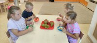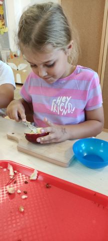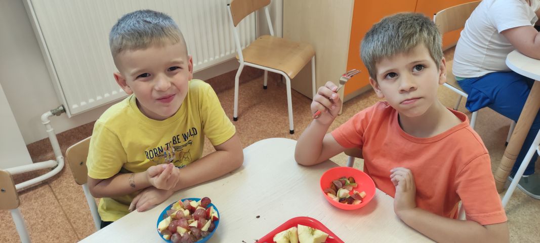 W ubiegłym tygodniu starszaki dokładnie poznały wszystkie owoce, które rosną w polskim sadzie. Zgromadzone owoce posłużyły nam do zabaw matematycznych, a także pozwoliły stworzyć pyszną i zdrową sałatkę owocową! Samodzielnie przygotowane jedzenie smakuje najlepiej, przekonały się o tym Biedronki!