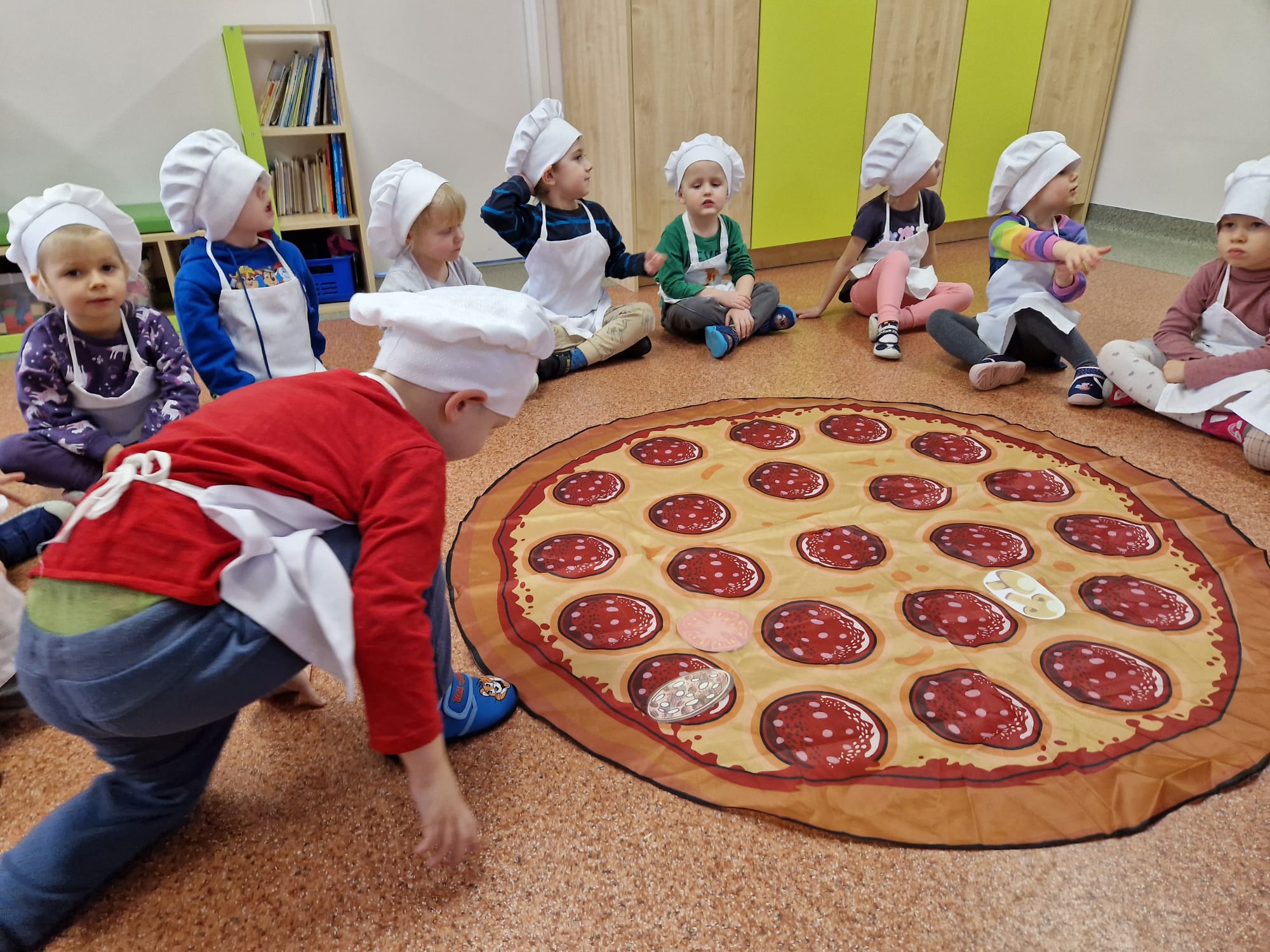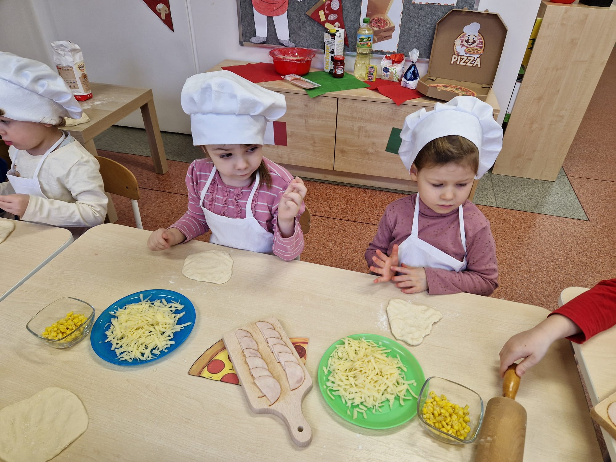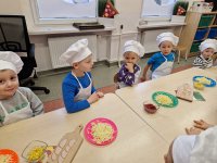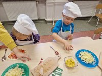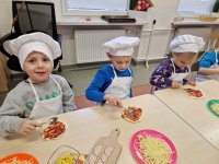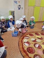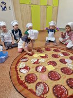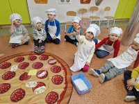 09.02.24 (piątek) obchodziliśmy w naszym przedszkolu Dzień Pizzy. Pizza to nie tylko jedna z ulubionych potraw dorosłych, ale także naszych przedszkolaków. Dzieci poznały na zajęciach, jakich składników potrzebujemy, aby zrobić pyszną pizzę, opowiadały, jakie składniki najbardziej lubią na pizzy, oraz zrobiliśmy wspólnie pyszne pizzerinki.