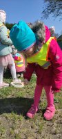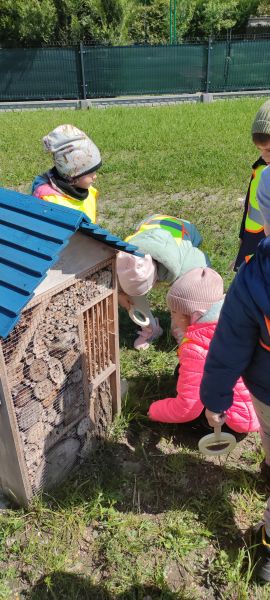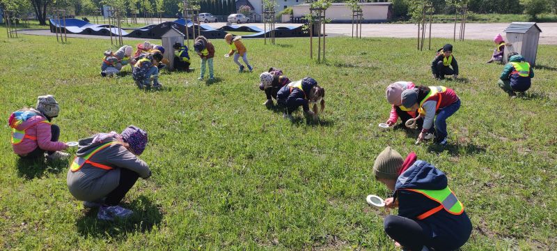 To ostatnio ulubione miejsce odwiedzane przez naszych przedszkolaków. Dzieci z wielkim zapałem i przy pomocy lup poszukują owadów, zamieszkujących tę okolicę. Biedronki, muszki, kowale, a nawet pająki i pszczoły, to tylko część owadów, które udało się zauważyć bystrym przedszkolakom. Po poszukiwaniach, znalazł się też czas na zabawy bieżne na pumptrucku. Dzieci z ochotą rozwijają sprawność ruchową, przy okazji czerpiąc z tego wiele radości.