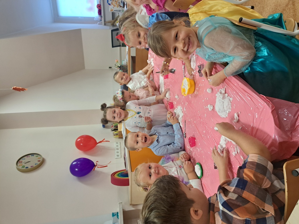 W naszym przedszkolu obchodziliśmy wyjątkowe święto – Księżniczkowy Dzień Dziewczynek! To był dzień pełen uśmiechu, blasku i dobrej zabawy. Sala zamieniła się w salę balową, a dziewczynki w piękne księżniczki w koronach, tiulowych sukienkach i z błyszczącymi uśmiechami. Chłopcy jak prawdziwi dżentelmeni złożyli koleżankom życzenia, wręczyli drobne upominki i zaprosili je do wspólnej zabawy. W programie dnia nie zabrakło: tańców na królewskim balu, tworzenia własnych biżuterii, zabaw muzycznych i konkursów dla małych księżniczek. To był magiczny dzień pełen radości, serdeczności i blasku!