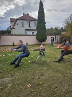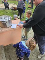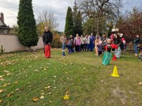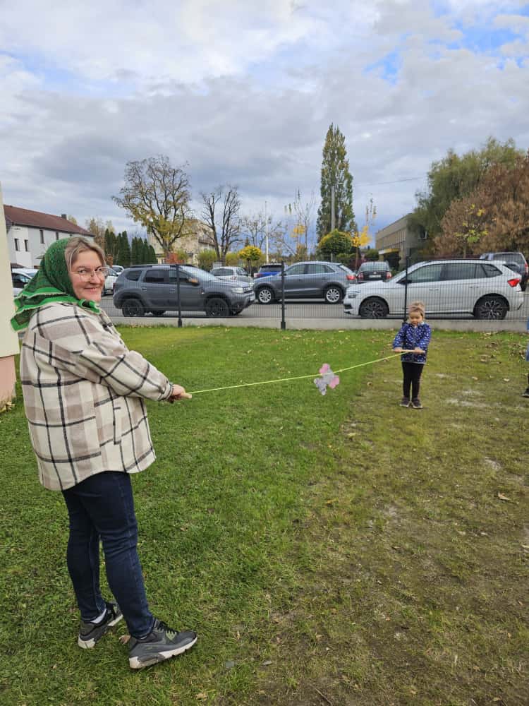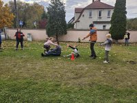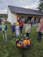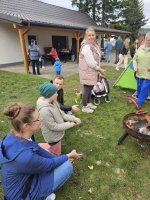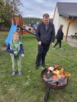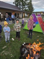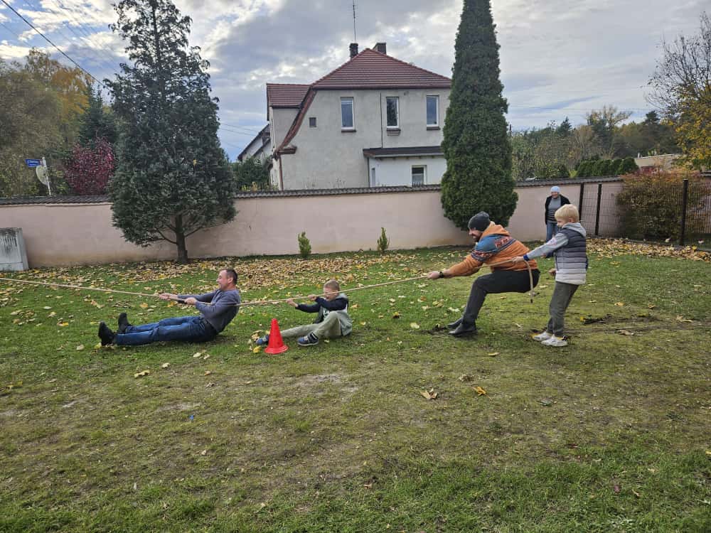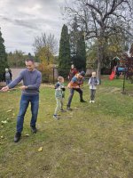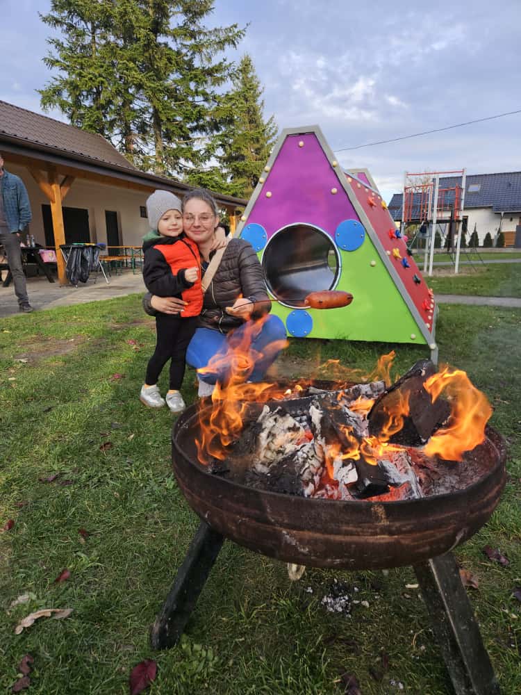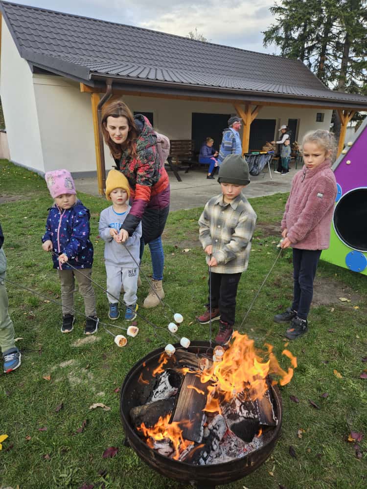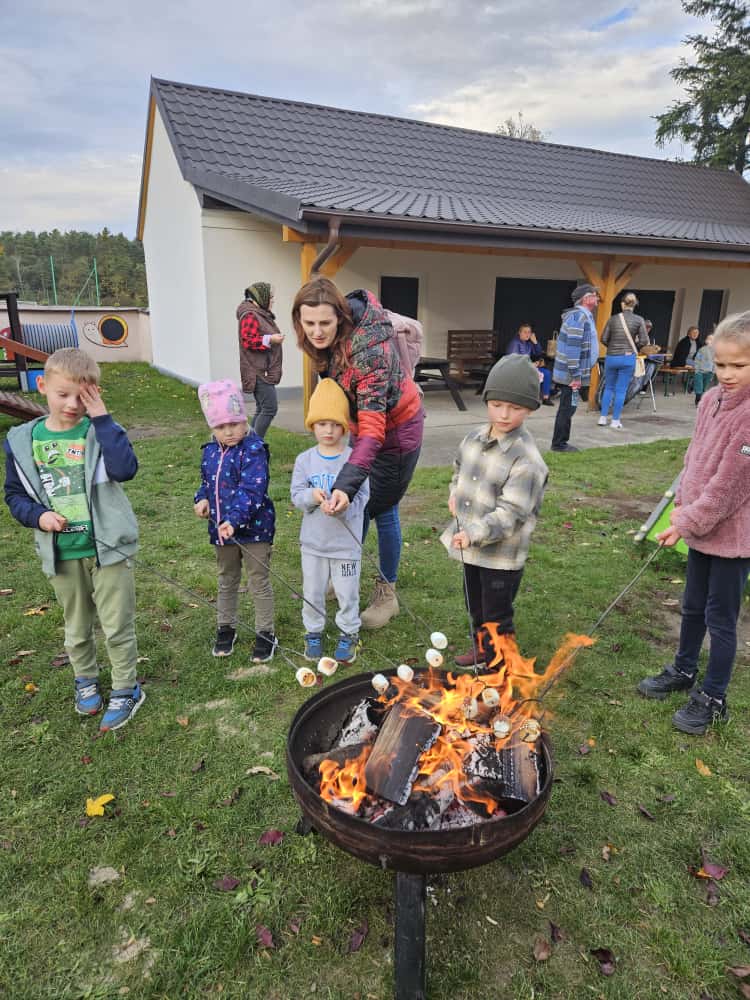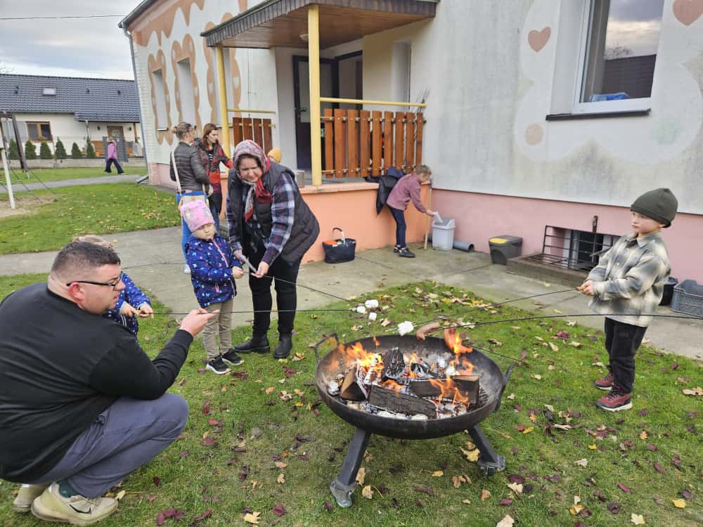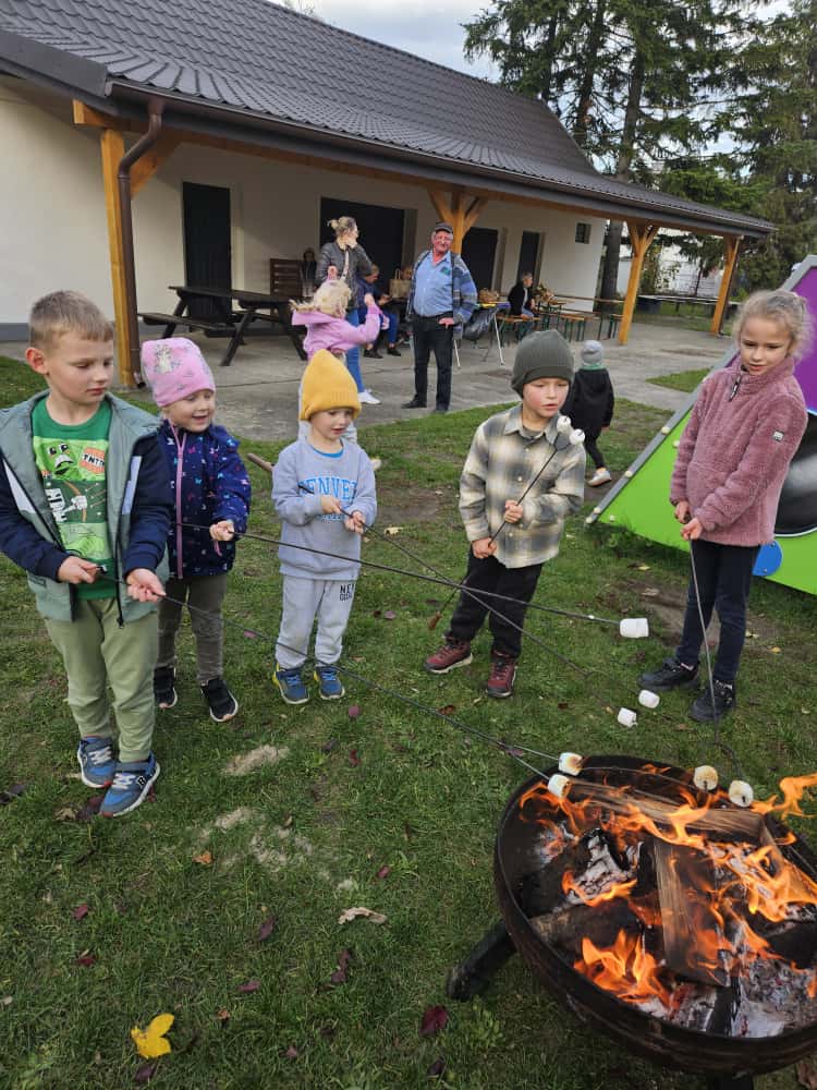 Centralnym punktem spotkania było wspólne ognisko, przy którym piekliśmy aromatyczne kiełbaski oraz – jak na Dzień Ziemniaka przystało – pyszne pieczone ziemniaki. Wspólny posiłek na świeżym powietrzu sprzyjał rozmowom, integracji i miłemu spędzaniu czasu w rodzinnej atmosferze.
