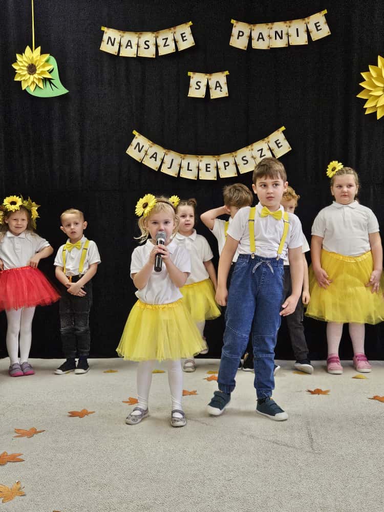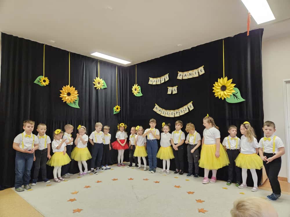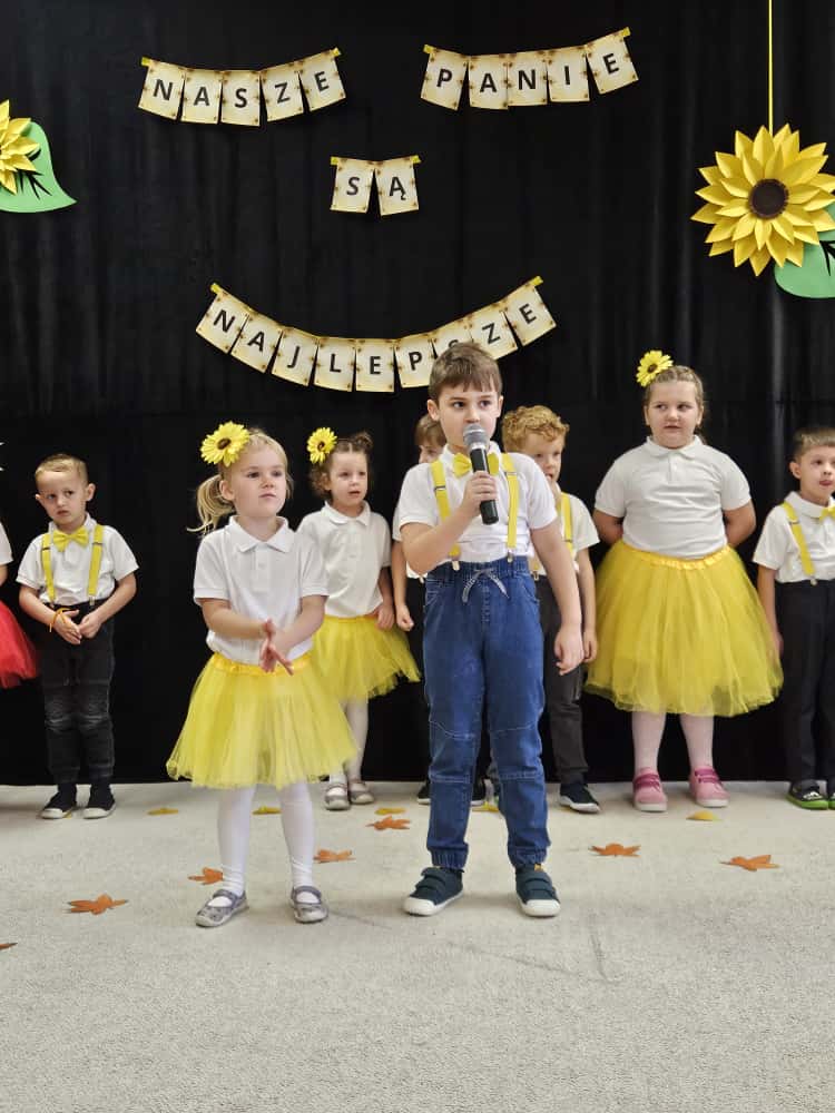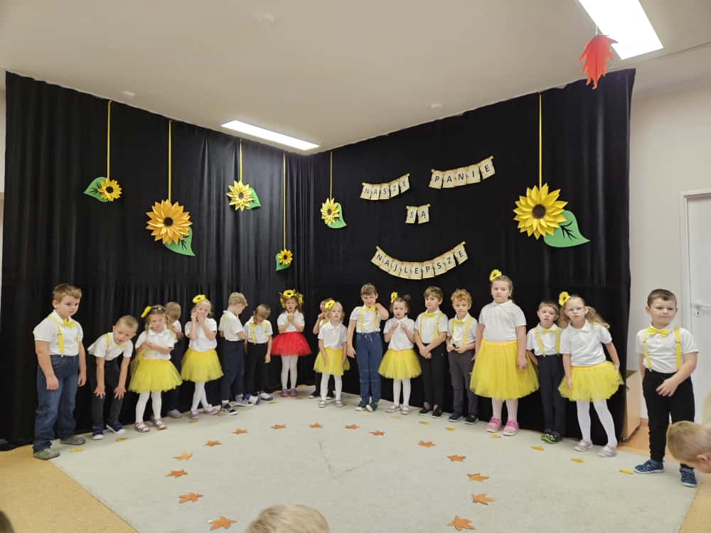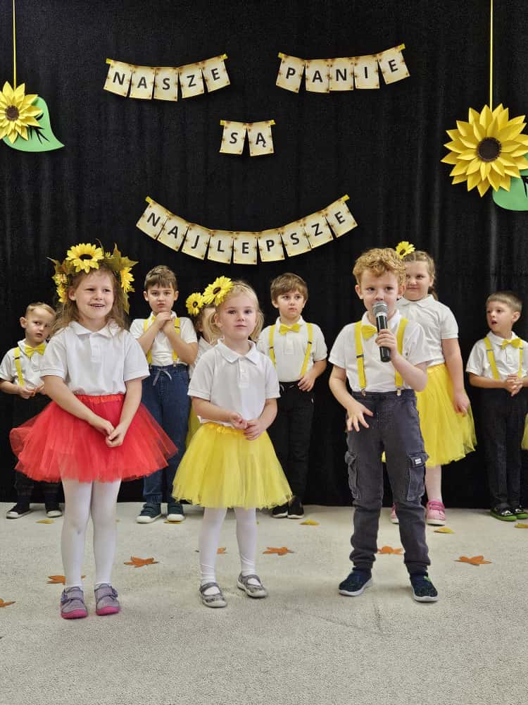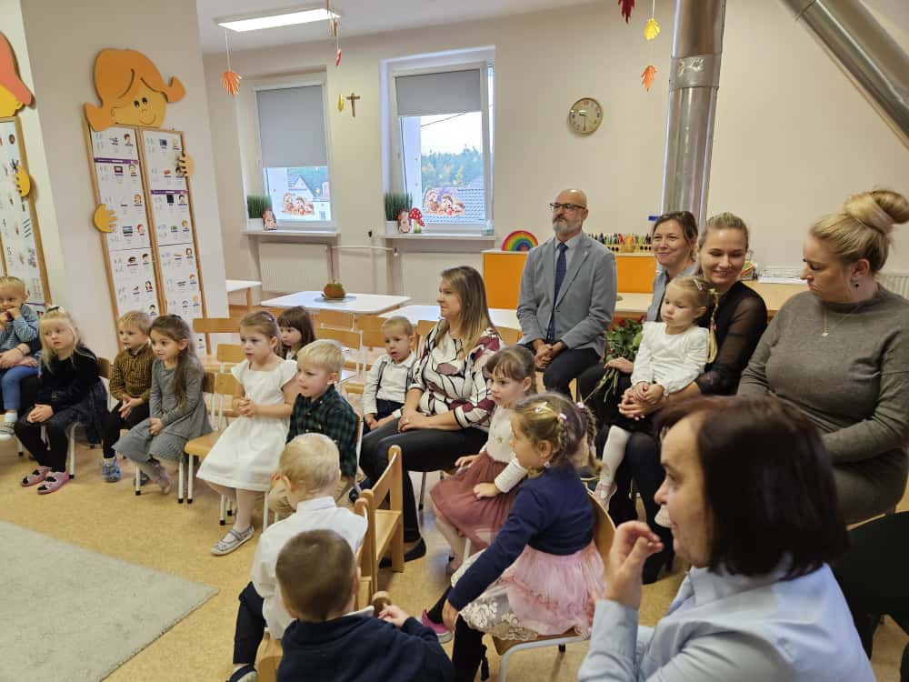 Największym wydarzeniem dnia była uroczysta akademia, podczas której przedszkolaki zaprezentowały krótki program artystyczny. Dzieci z wielkim zaangażowaniem recytowały wierszyki i śpiewały piosenki. Występ został nagrodzony gromkimi brawami, a na twarzach dorosłych pojawiło się wiele wzruszenia. Do życzeń dołączyła się także nasza Rada Rodziców oraz Pan Wiceburmistrz.