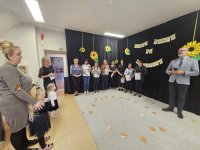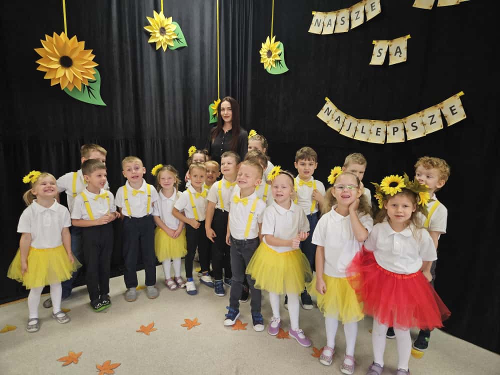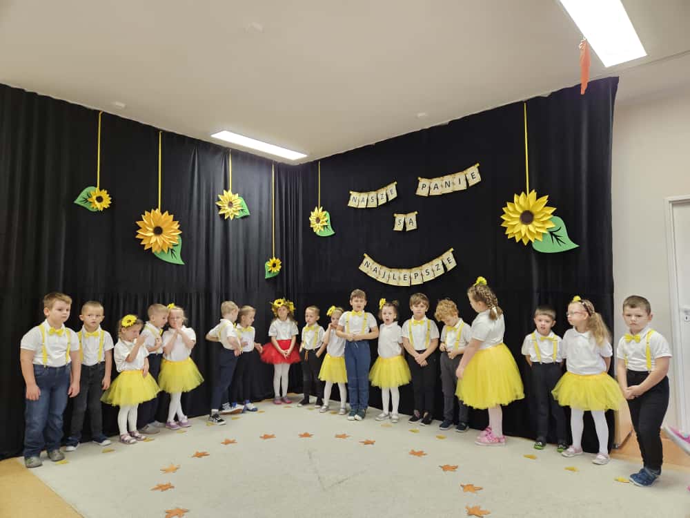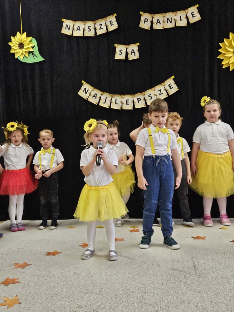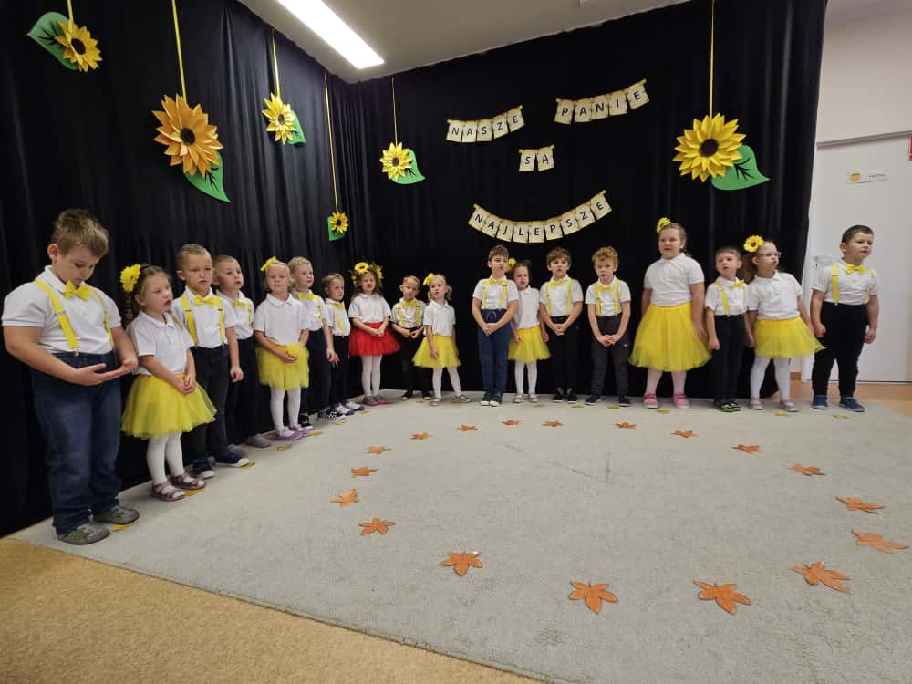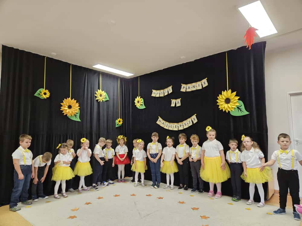 Największym wydarzeniem dnia była uroczysta akademia, podczas której przedszkolaki zaprezentowały krótki program artystyczny. Dzieci z wielkim zaangażowaniem recytowały wierszyki i śpiewały piosenki. Występ został nagrodzony gromkimi brawami, a na twarzach dorosłych pojawiło się wiele wzruszenia. Do życzeń dołączyła się także nasza Rada Rodziców oraz Pan Wiceburmistrz.
