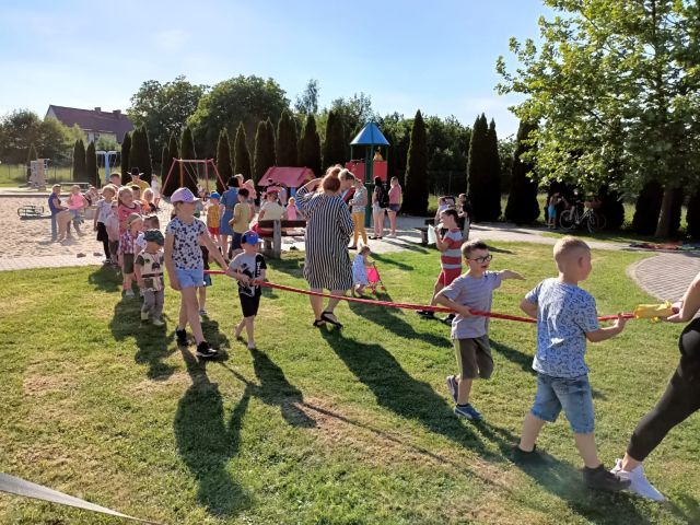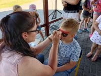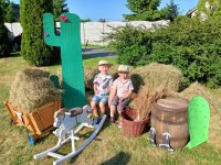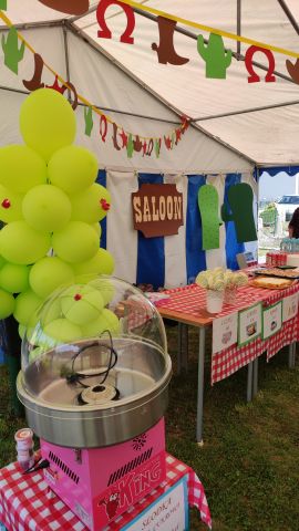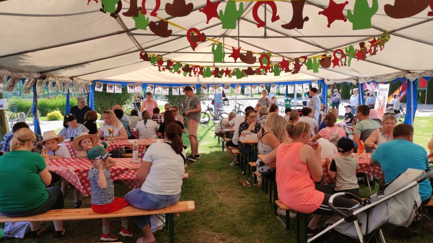 To właśnie w piątek 3 czerwca, wszyscy mieszkańcy Górażdży i wszystkie dzieci z naszego przedszkola, przeniosły się na prerię, gdzie czekało na nas mnóstwo atrakcji związanych z Dzikim Zachodem! Już na wejściu przybyłych gości witała fotobudka i drogowskaz wskazujący najważniejsze miejsca na festynie. Uczestnicy mogli częstować się słodkościami, kolorową watą cukrową, zimnymi lodami, ale też smaczną kiełbasą z grilla czy chrupiącymi frytkami i zapiekankami. Na najmłodszych czekało też malowanie twarzy oraz loteria fantowa. O pozostałe atrakcje i zabawy zadbały panie animatorki, ktore podczas całego festynu dostarczyły i dużym i małym mnóstwo zabawy i radości!
