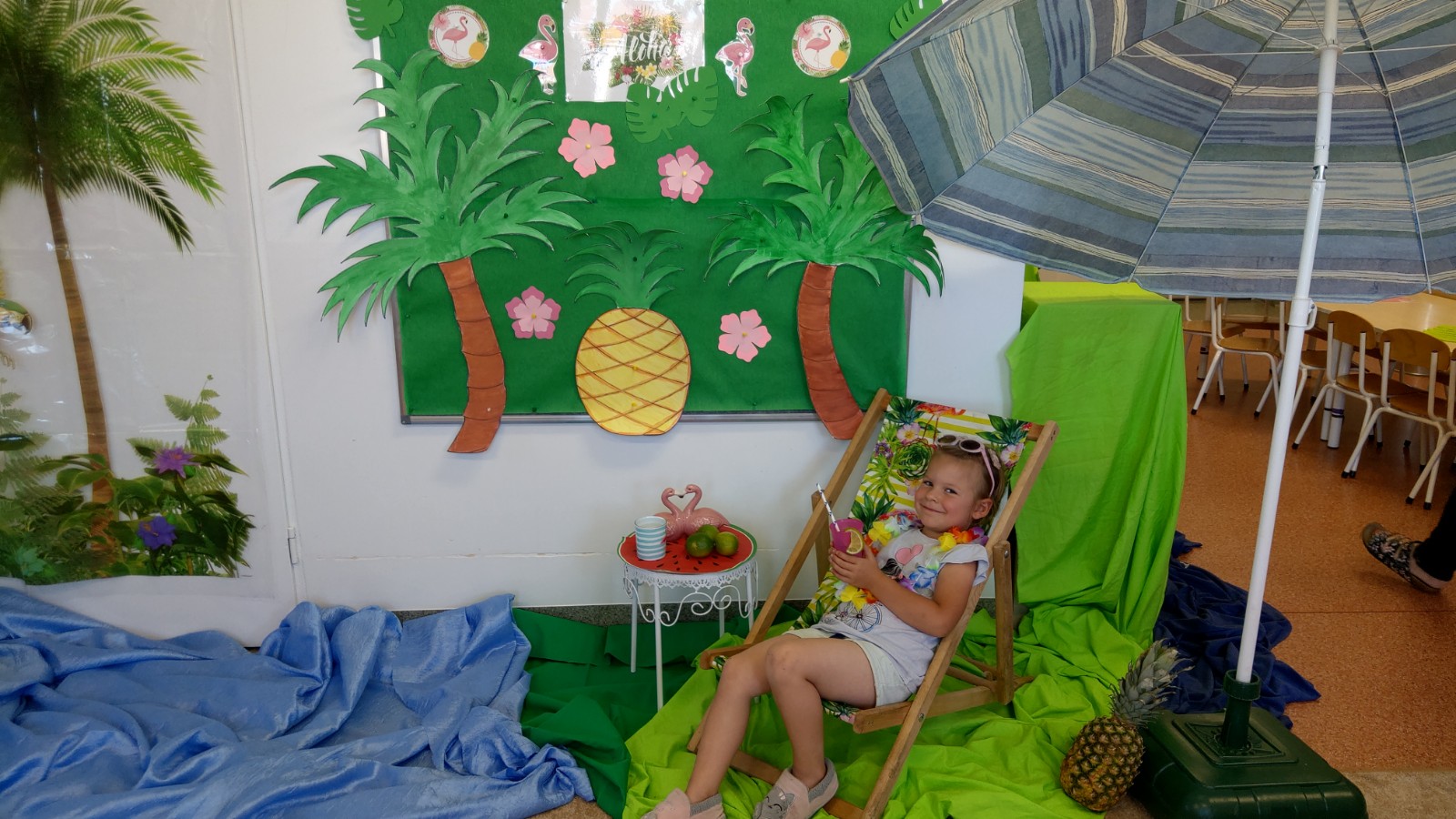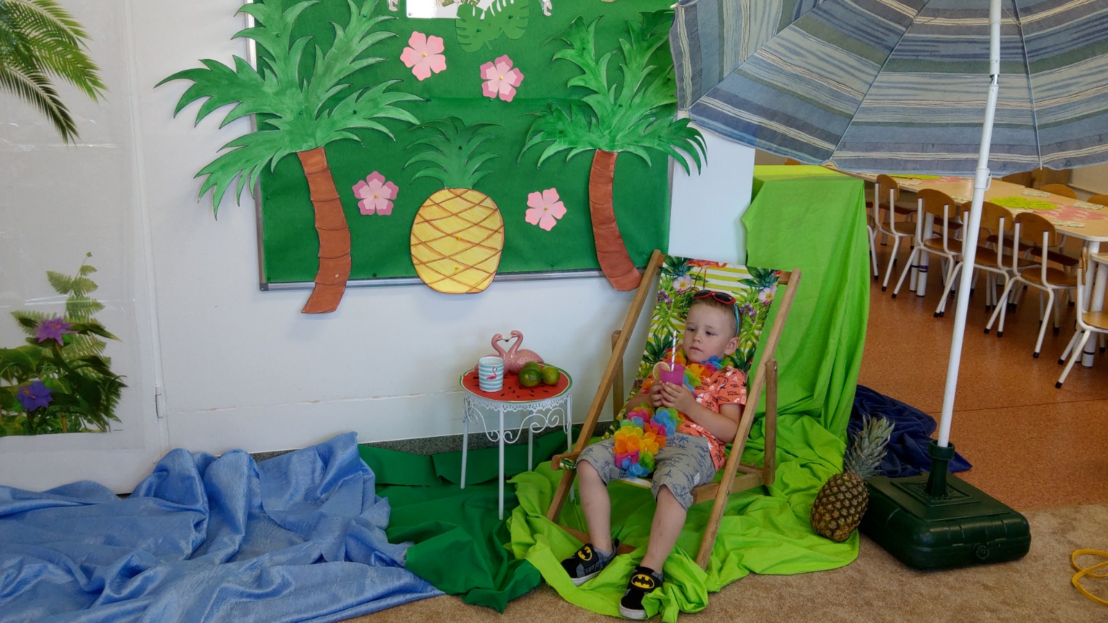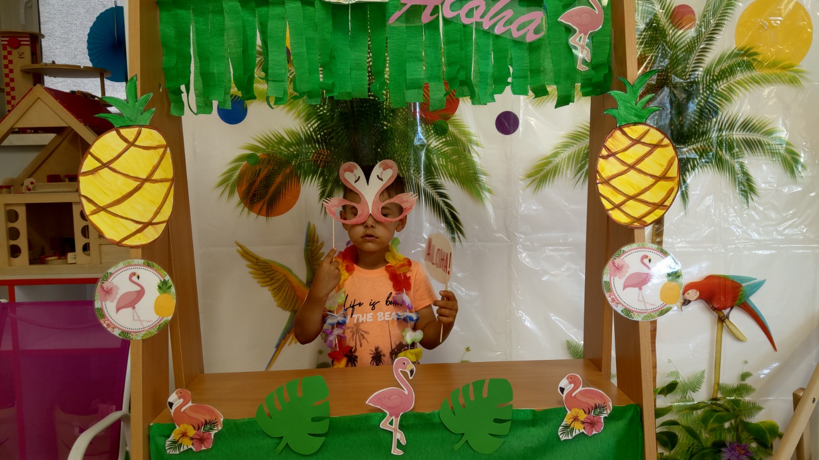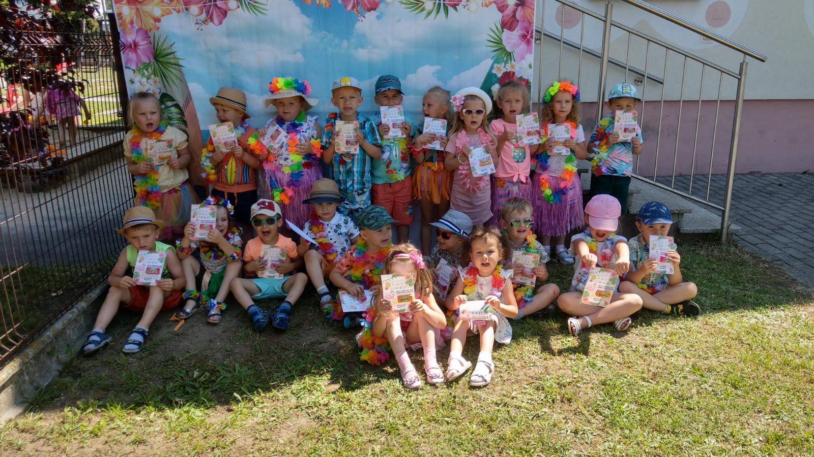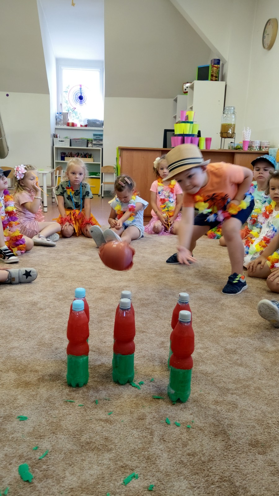 Z okazji rozpoczynających się wakacji i lata w naszej grupie został zorganizowany Dzień Hawajski. W naszej sali pojawiła się plaża, palmy, flamingi, egzotyczne owoce i oczywiście świetna zabawa. Tego dnia dzieci pojawiły się w przedszkolu w pięknych hawajskich strojach. Podczas Dnia Hawajskiego zostały zorganizowane różne zabawy, tańczyliśmy do hawajskich piosenek, robiliśmy sobie zdjęcia w hawajskiej fotobudce jak i na tle naszej przedszkolnej plaży. Były także tańce oraz pyszny poczęstunek. To był naprawdę piękny dzień. Wszystkie dzieci były bardzo szczęśliwe.