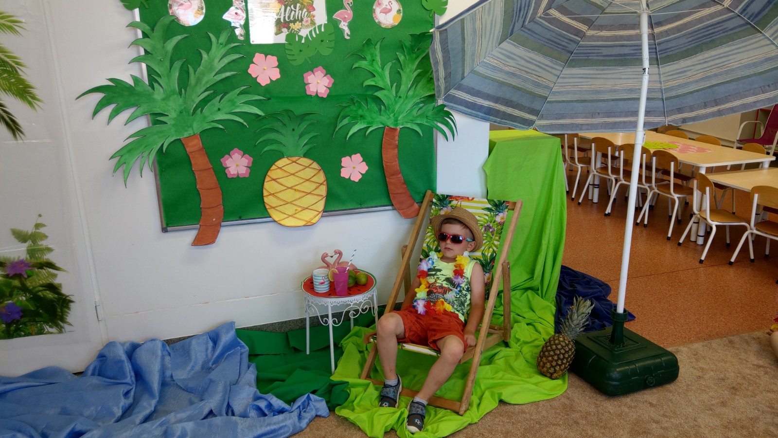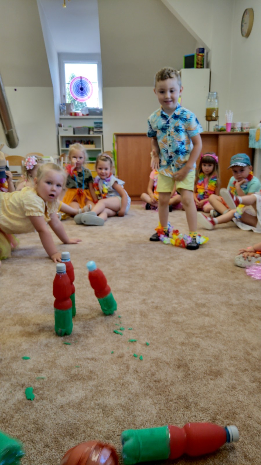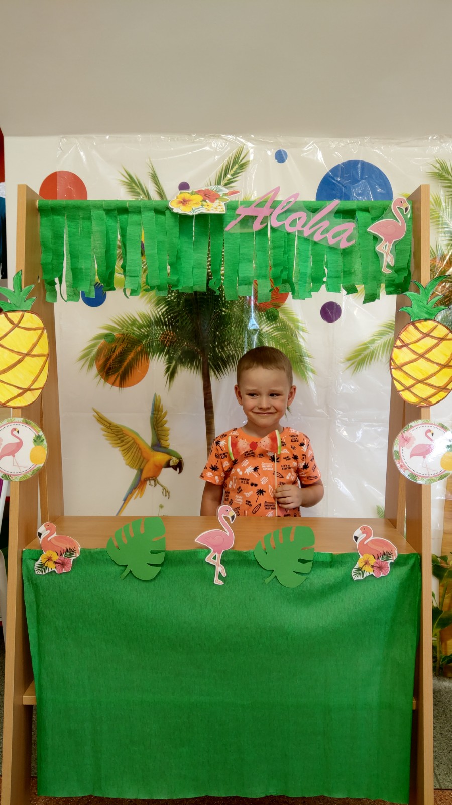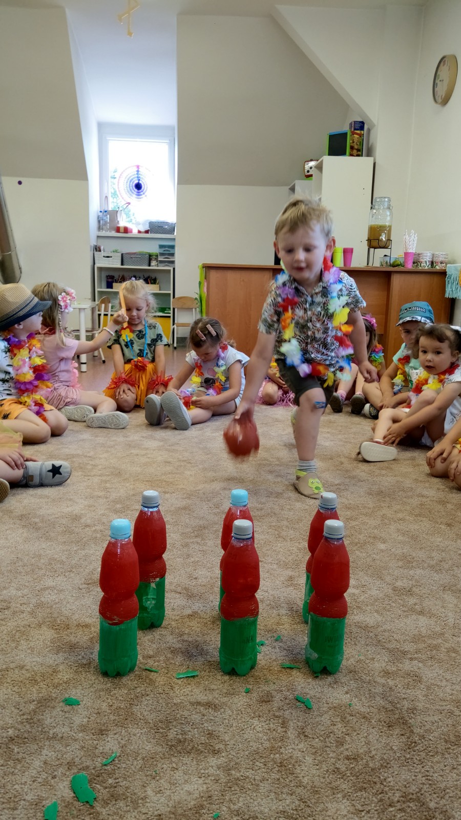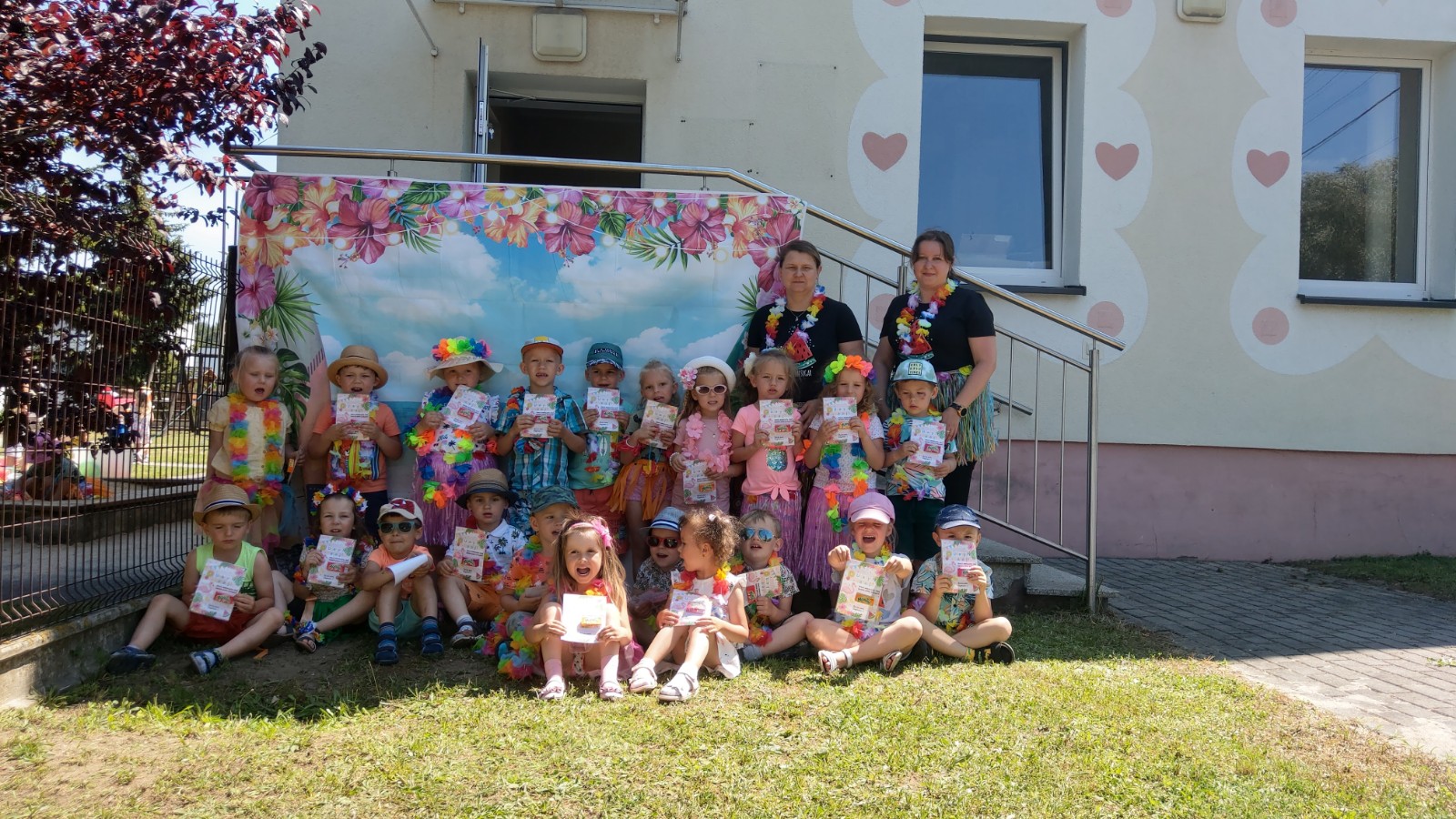 Z okazji rozpoczynających się wakacji i lata w naszej grupie został zorganizowany Dzień Hawajski. W naszej sali pojawiła się plaża, palmy, flamingi, egzotyczne owoce i oczywiście świetna zabawa. Tego dnia dzieci pojawiły się w przedszkolu w pięknych hawajskich strojach. Podczas Dnia Hawajskiego zostały zorganizowane różne zabawy, tańczyliśmy do hawajskich piosenek, robiliśmy sobie zdjęcia w hawajskiej fotobudce jak i na tle naszej przedszkolnej plaży. Były także tańce oraz pyszny poczęstunek. To był naprawdę piękny dzień. Wszystkie dzieci były bardzo szczęśliwe.