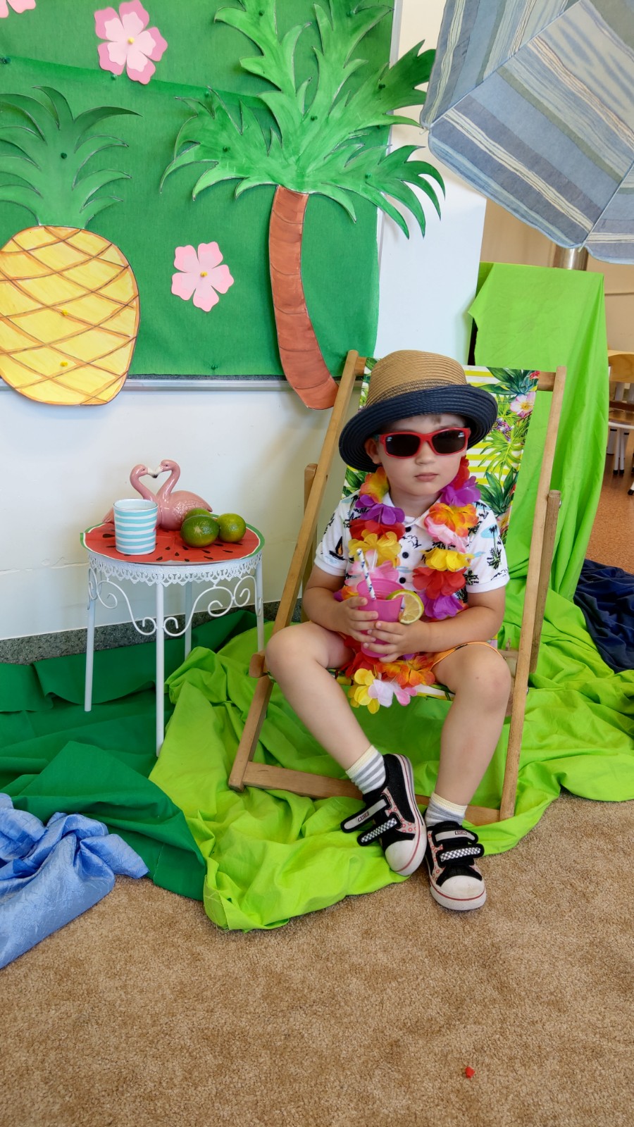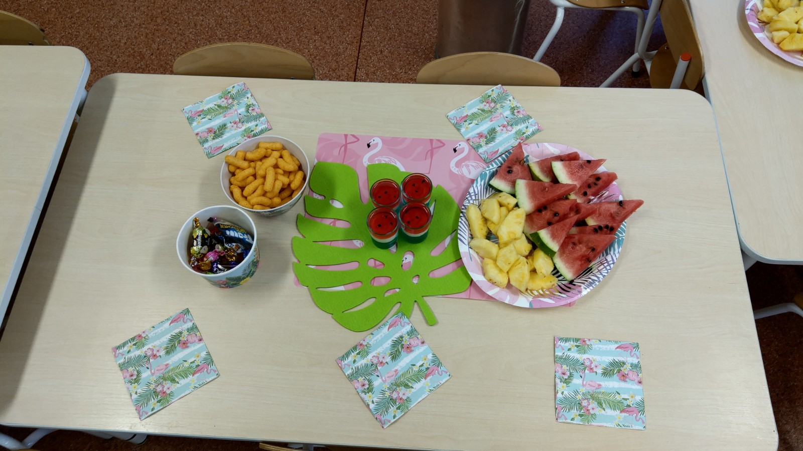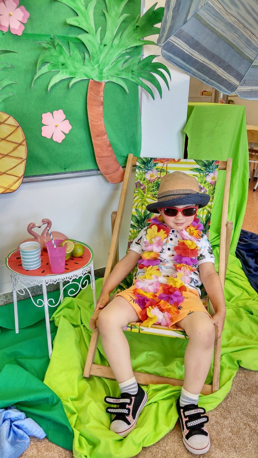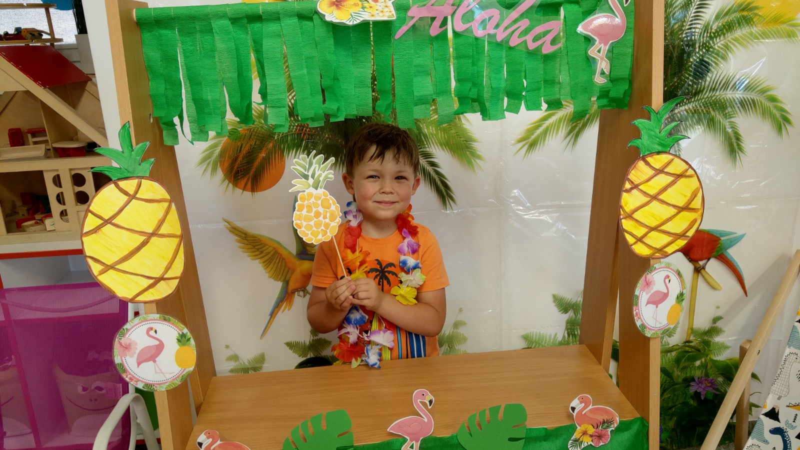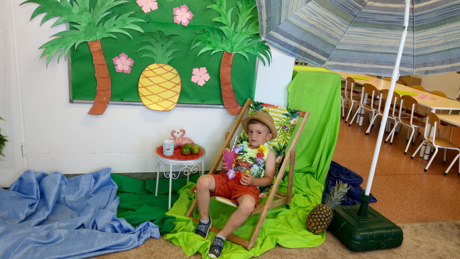 Z okazji rozpoczynających się wakacji i lata w naszej grupie został zorganizowany Dzień Hawajski. W naszej sali pojawiła się plaża, palmy, flamingi, egzotyczne owoce i oczywiście świetna zabawa. Tego dnia dzieci pojawiły się w przedszkolu w pięknych hawajskich strojach. Podczas Dnia Hawajskiego zostały zorganizowane różne zabawy, tańczyliśmy do hawajskich piosenek, robiliśmy sobie zdjęcia w hawajskiej fotobudce jak i na tle naszej przedszkolnej plaży. Były także tańce oraz pyszny poczęstunek. To był naprawdę piękny dzień. Wszystkie dzieci były bardzo szczęśliwe.